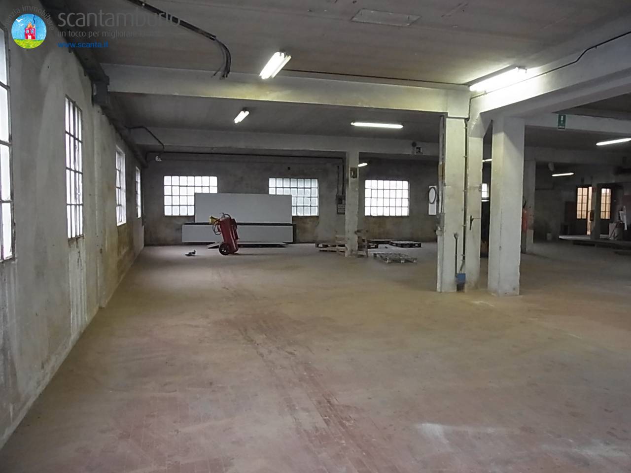 L'immobile disposto su 2 piani attualmente cos composto: piano terra di c.a. mq. 963 con zona capannone mq 709 h cm 350-345-325, piano terra mq 254 h cm 325 uffici e sala mostra ; piano I° ulteriori c.a. 709 mq h cm 275-310 con zona magazzino e sala mostra, cucina e residenza custode, la categoria catastale D/1, area attorno al capannone mq 842. Il capannone piano terra + sala mostra piano primo ( ? 2.000,00) + uffici da sistemare ed adattare alle proprie esigenze ( ? 500,00). Presenza di montacarichi e cabina enel privata da 30 kwatt.
