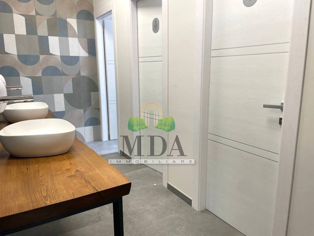 Per quanto riguarda i servizi, limmobile dispone di otto bagni uomo/donna, due bagni per disabili (per un totale di cinque bagni per piano) e un ulteriore bagno attualmente da ultimare al piano seminterrato.