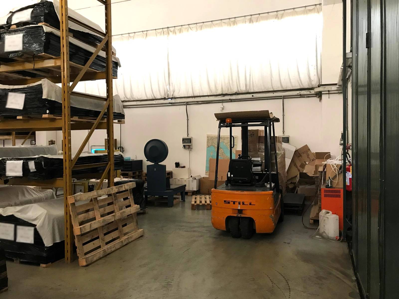 L'immobile presenta due portoni d'accesso, agevoli per il carico e lo scarico di materiali anche di grandi dimensioni, un sistema di riscaldamento ad areazione ed un sistema antincendio.