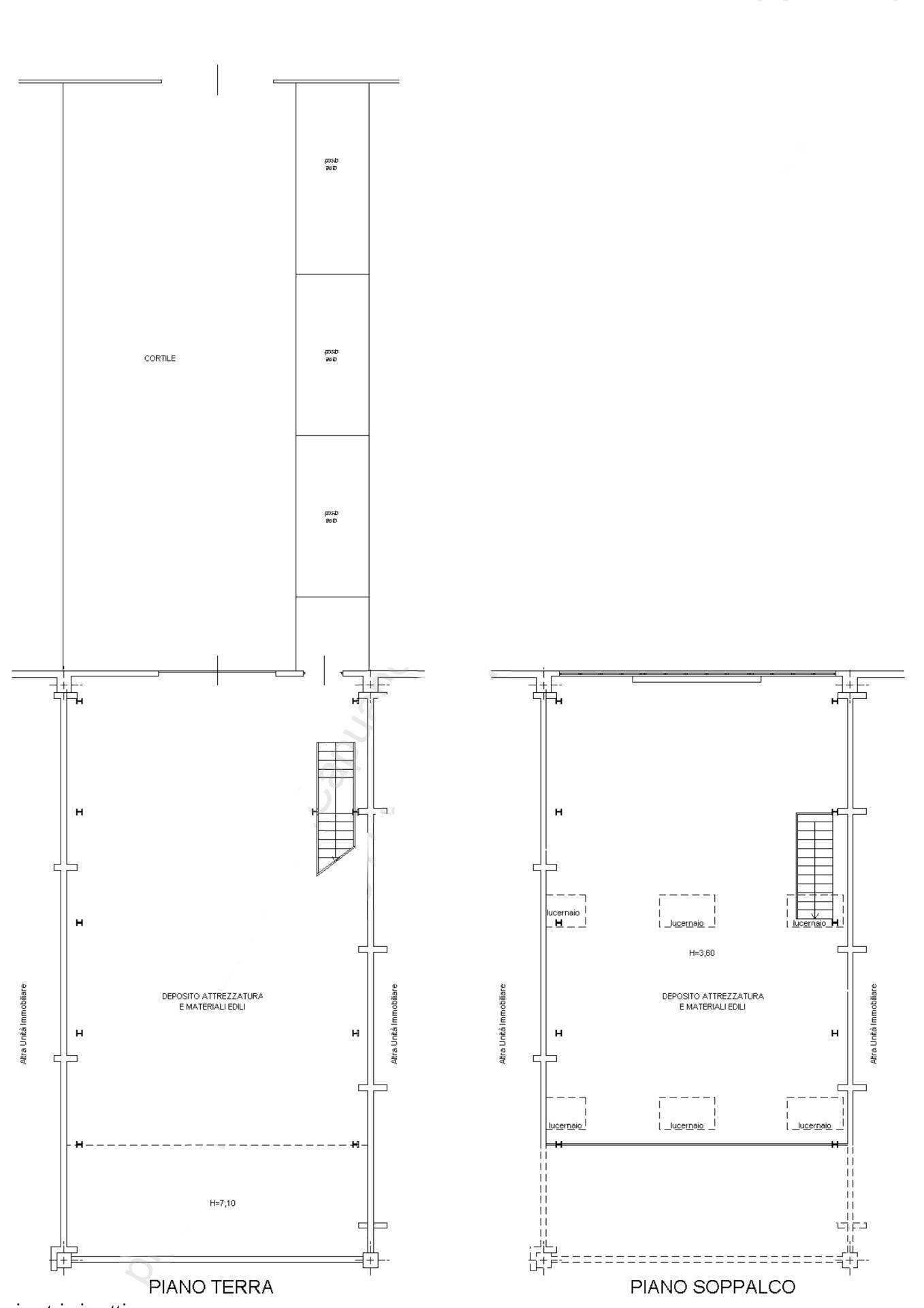 Accessibile tramite strada pubblica, preceduto da un'area cortilizia con recinzione metallica e cancello scorrevole, che conduce alla porta di ingresso e alla saracinesca di grandi dimensioni di accesso all'interno, che risulta distribuito su due piani grazie alla realizzazione di un piano soppalco con struttura in acciaio e solaio in lamiera grecata.