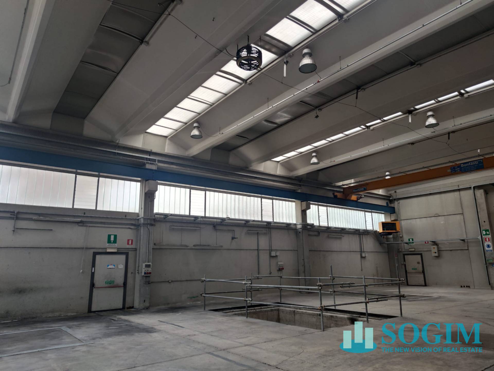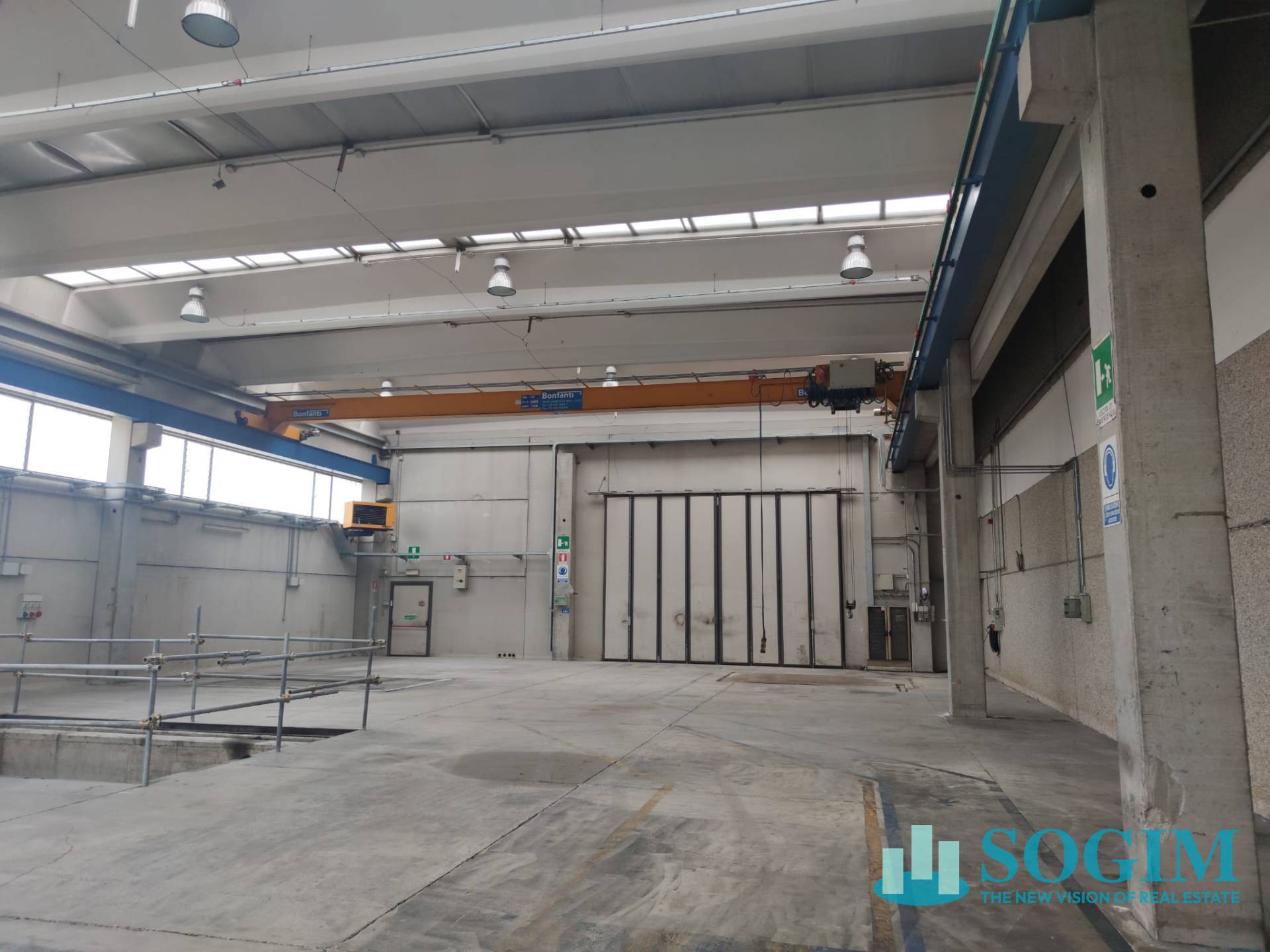 Il carroponte presente pu sostenere fino a 5 tonnellate, facilitando il trasporto di merci pesanti all'interno del capannone.