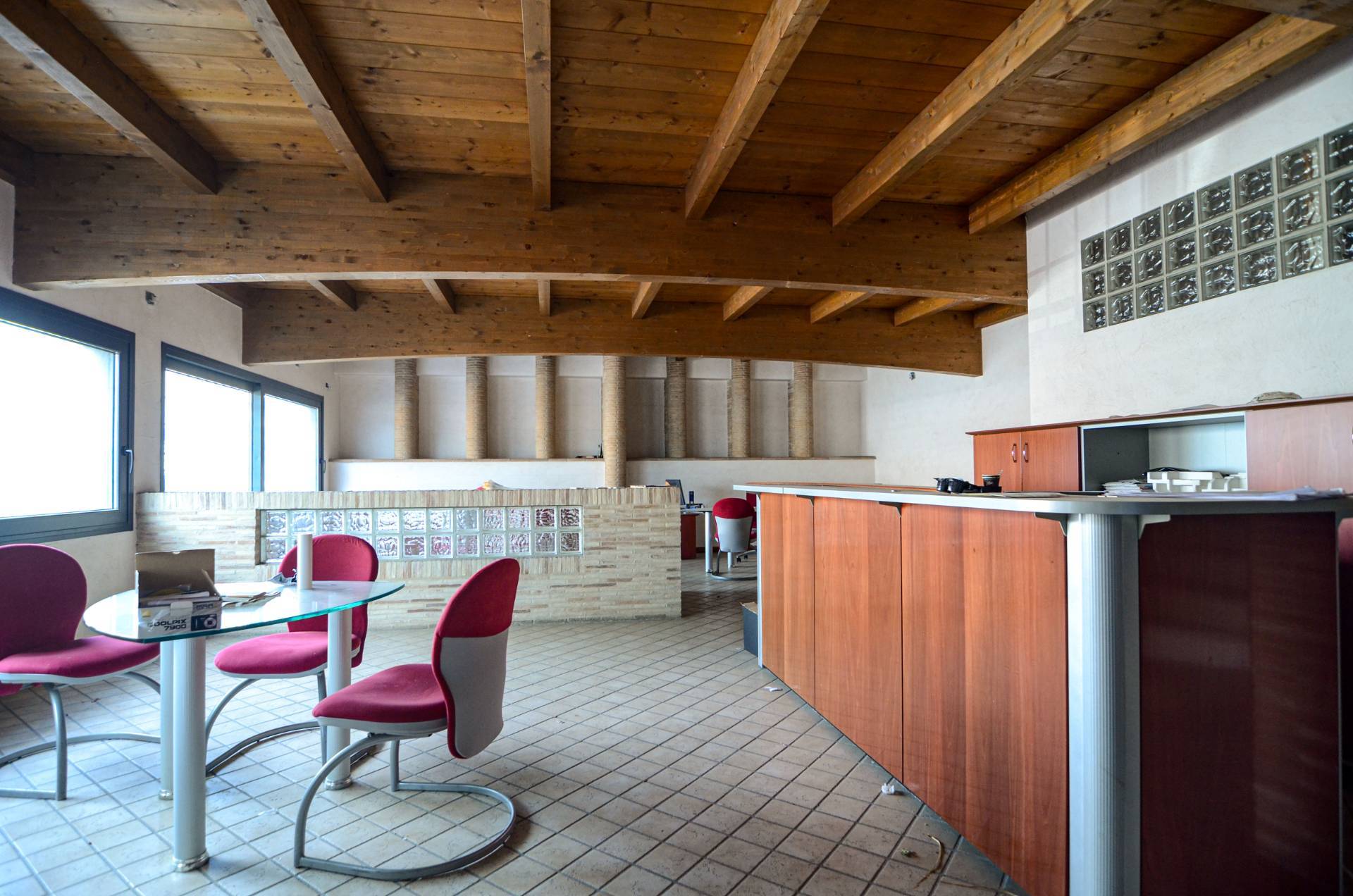 Il capannone si compone di tre ingressi, tre depositi di 92 mq e servizi igienici al piano seminterrato, di altezza interna pari a 2,40 mt. E' presente un ufficio di 98 mq con ulteriore ingresso e servizi igienici al piano terra, di altezza 2,80 mt. Al piano primo, invece, sono presenti un locale di 86 mq e altezza 3,90 mt, una sala riunioni, un ripostiglio, un ufficio di 111 mq e un servizio igienico.