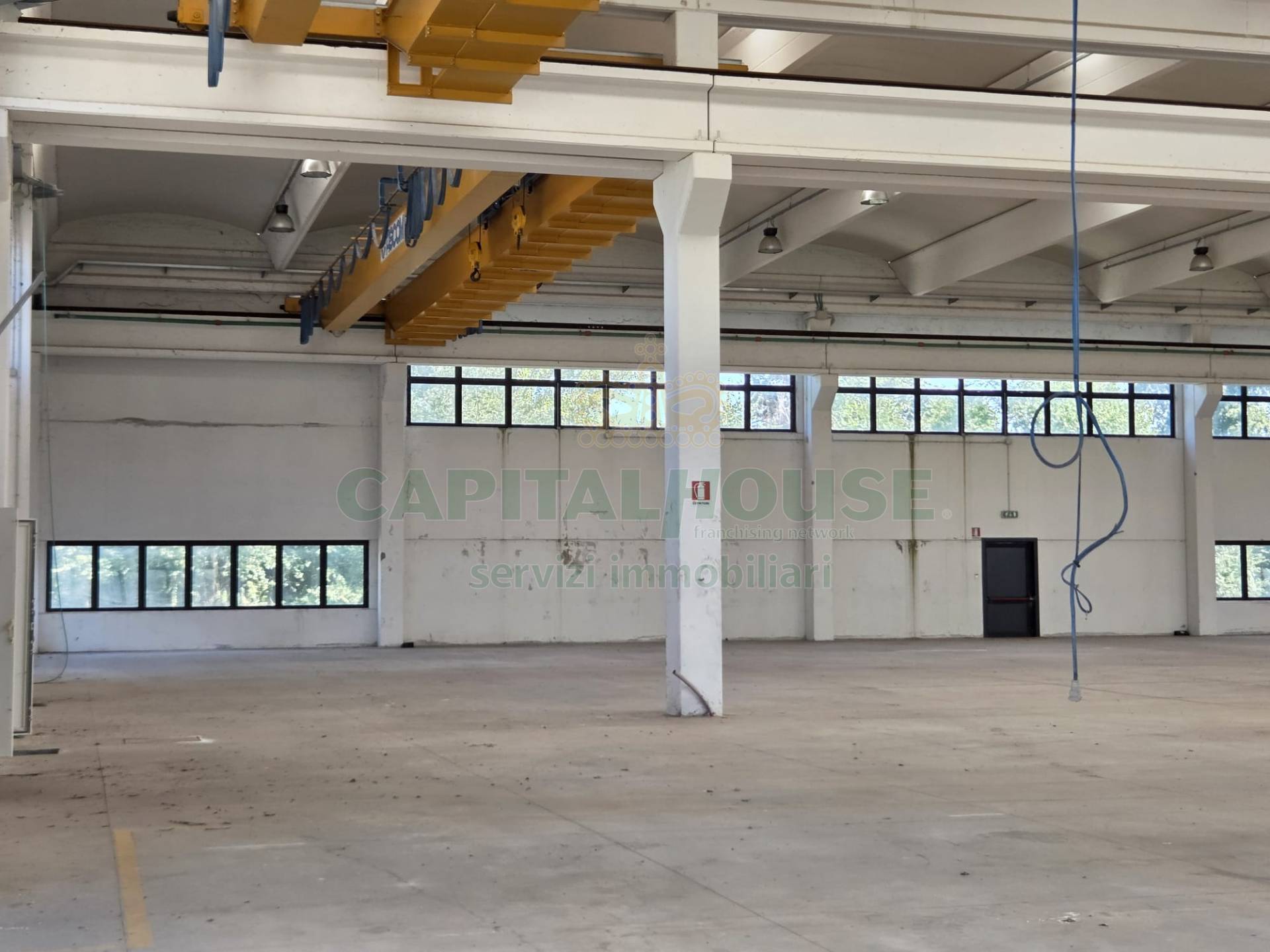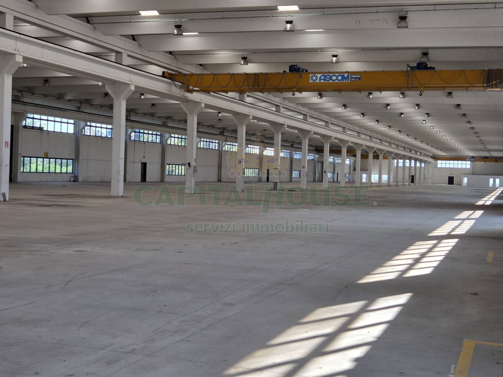 Dettagli immobile: Capannone artigianale (mq. 9.262): -Altezza interna di 8 metri -Spazio interno unico (circa 215x42 metri) con batteria di servizi igienici nella parte terminale -6 carri ponte da 50+50 tonnellate ciascuno -4 accessi carrabili con portoni scorrevoli -Pavimento industriale e finiture in discrete condizioni Edificio non riscaldato, con impianti elettrici a norma Blocchi uffici su due piani: -Piano terra adibito a spazi lavorativi e servizi -Piano primo diviso tra appartamento del custode e uffici, servito da ascensore e scala interna -Impianto di riscaldamento e raffrescamento, pavimenti in ceramica e infissi in alluminio con vetrocamera -La struttura presenta segni di distacco nelle pareti interne al piano primo e necessit di interventi di ristrutturazione.