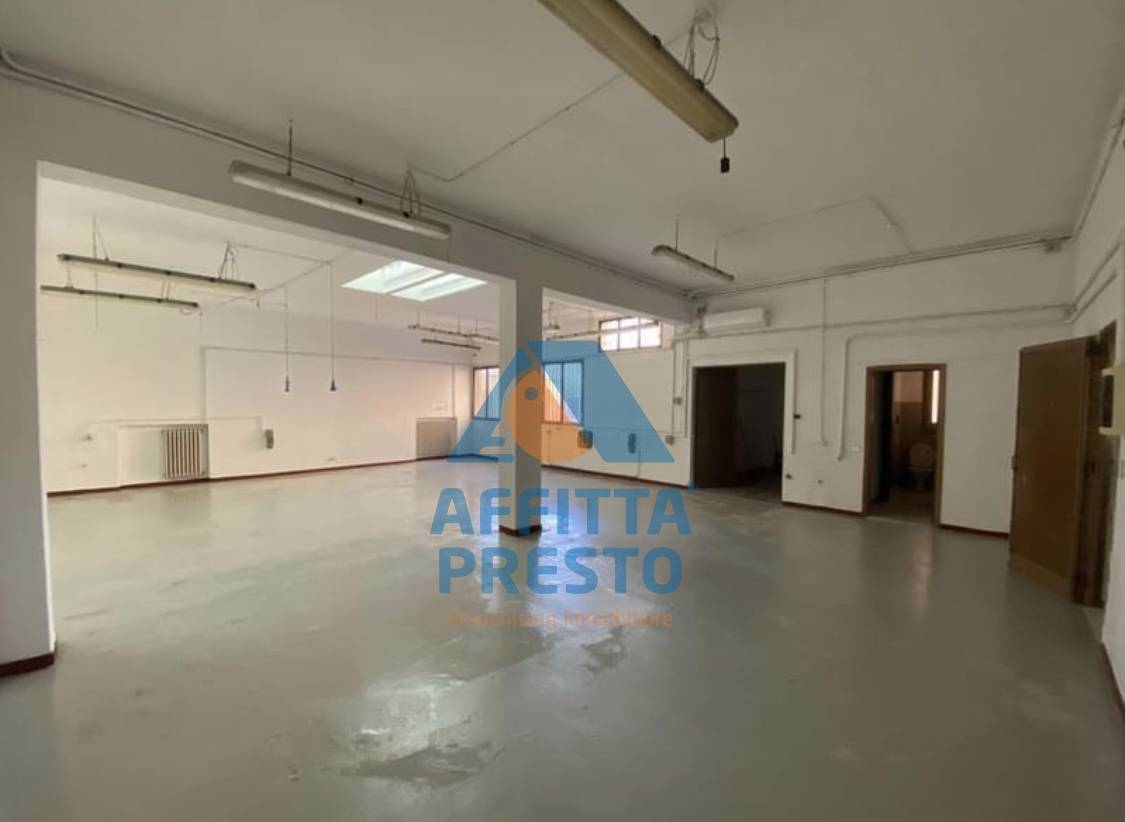 Lambiente molto luminoso, ha finestre con inferriate, pavimentazione industriale in resina, H4m, portone dingresso L2,50m. Bagno con antibagno e ulteriore vano di circa 10mq, con accesso da porta blindata.