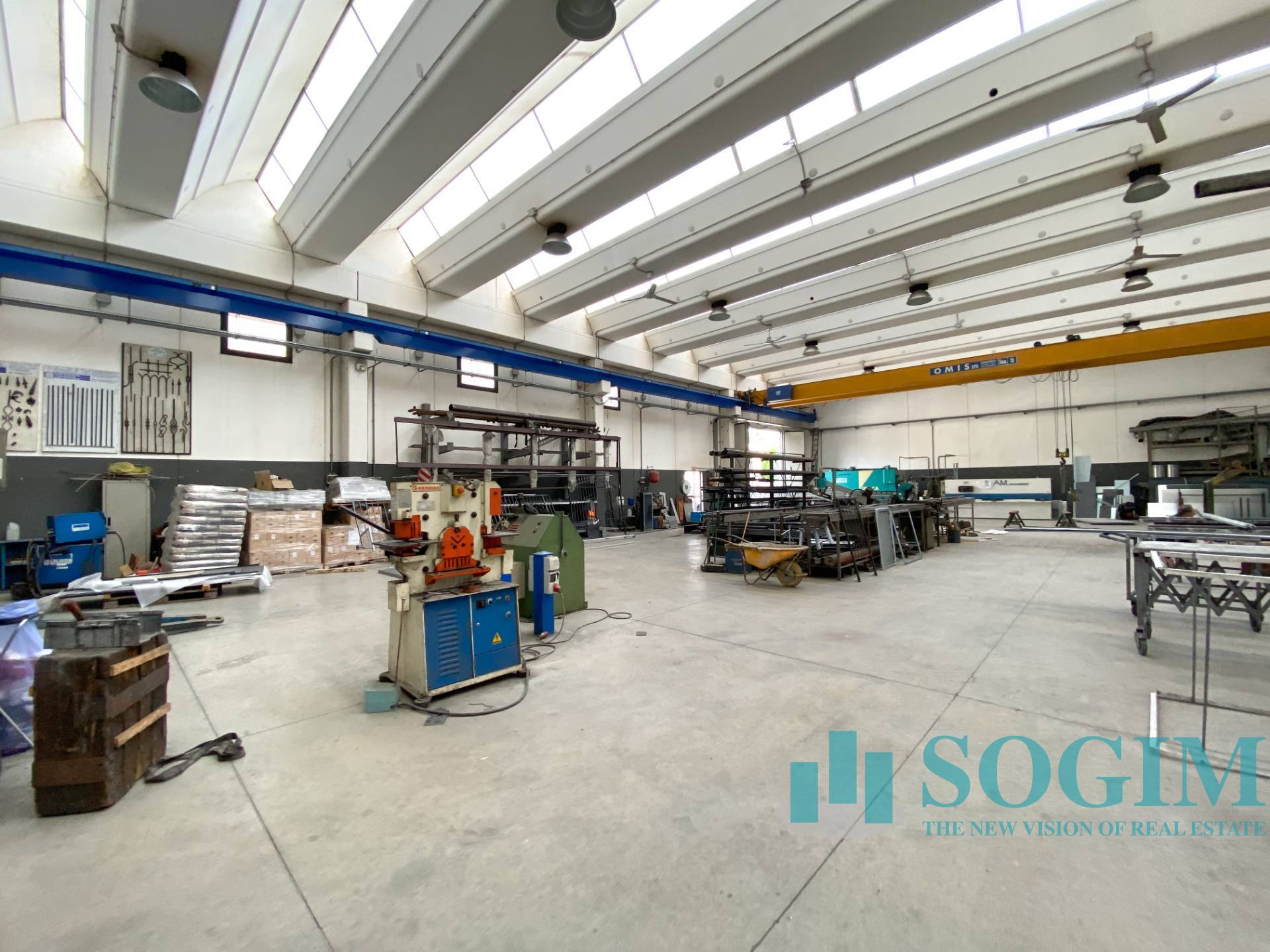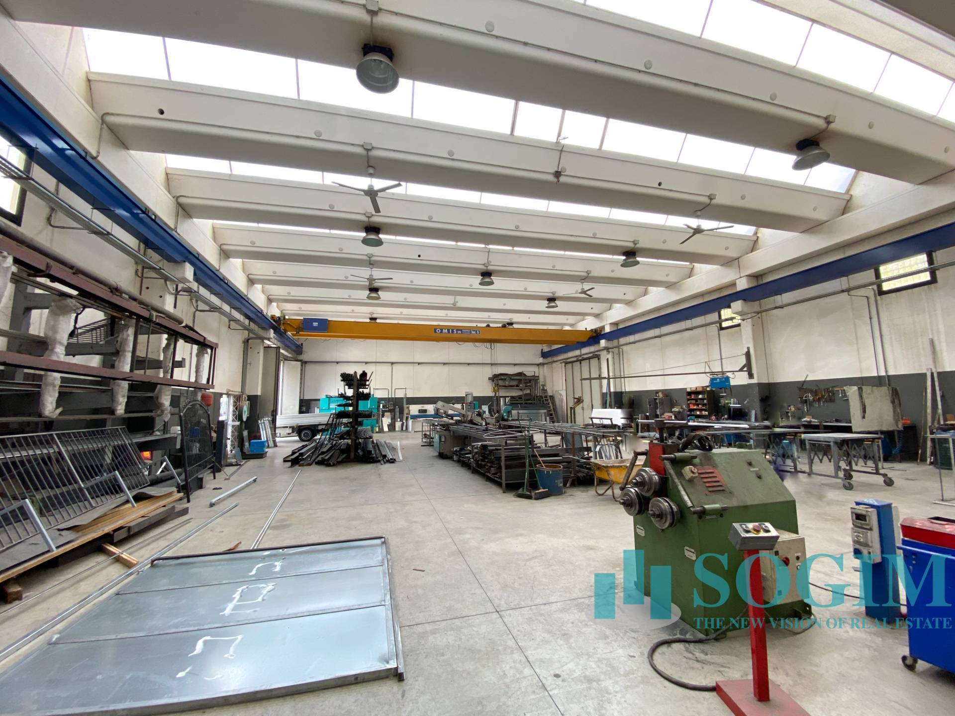 Limmobile, in posizione di testa, dotato di due passi carrai ed composto da un'unica campata da 670 mq, con carroponte da 5ton. Sono presenti servizi, spogliatoi e ca. 40 mq di uffici, oltre ad un piano superiore con appartamento di 45 mq e deposito di 50 mq, che affaccia direttamente sui locali produttivi.