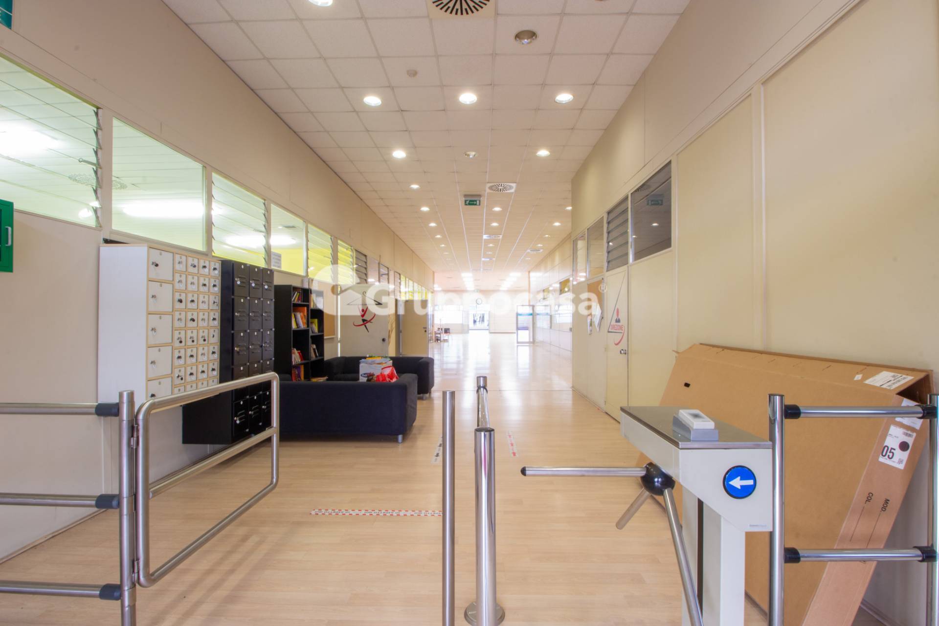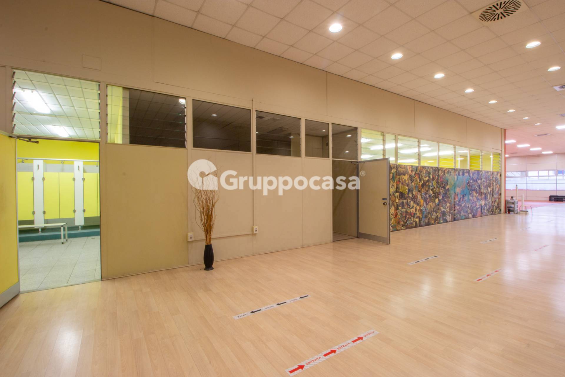 Il capannone, attualmente adibito a palestra, composto da ingresso con reception completa di vetrata per laccoglienza, servizi e ripostiglio, ufficio, ampia sala principale attualmente adibita ad area fitness, locale ad uso studio, 3 sale adibite a corsi, spogliatoio femminile completo di docce, spogliatoio maschile, 3 locali ad uso ripostiglio oltre servizi, locale caldaia.