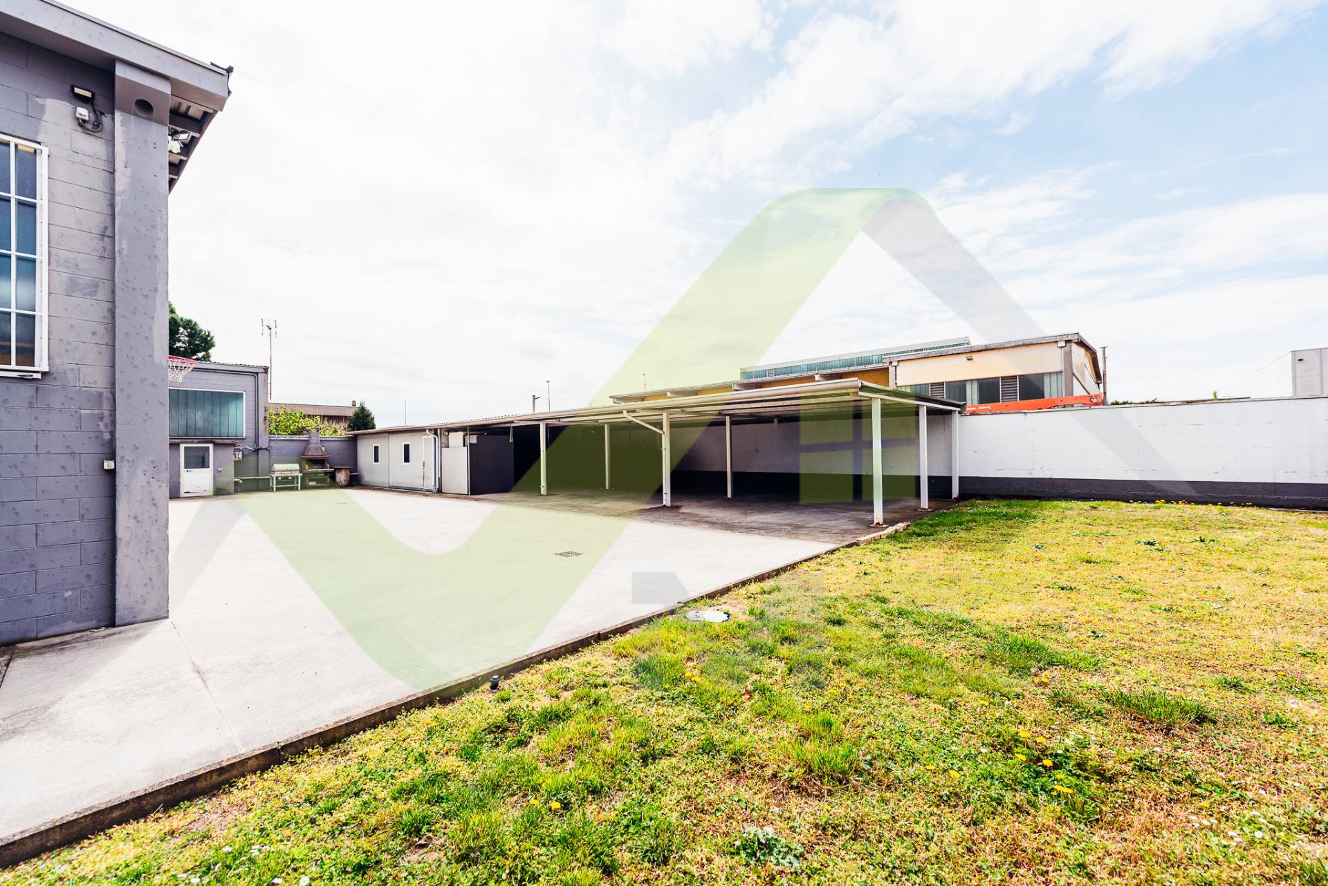 Tettoia esterna: 195 mq di area coperta aggiuntiva, di cui una parte stata sapientemente trasformata in una sala riunioni professionale.