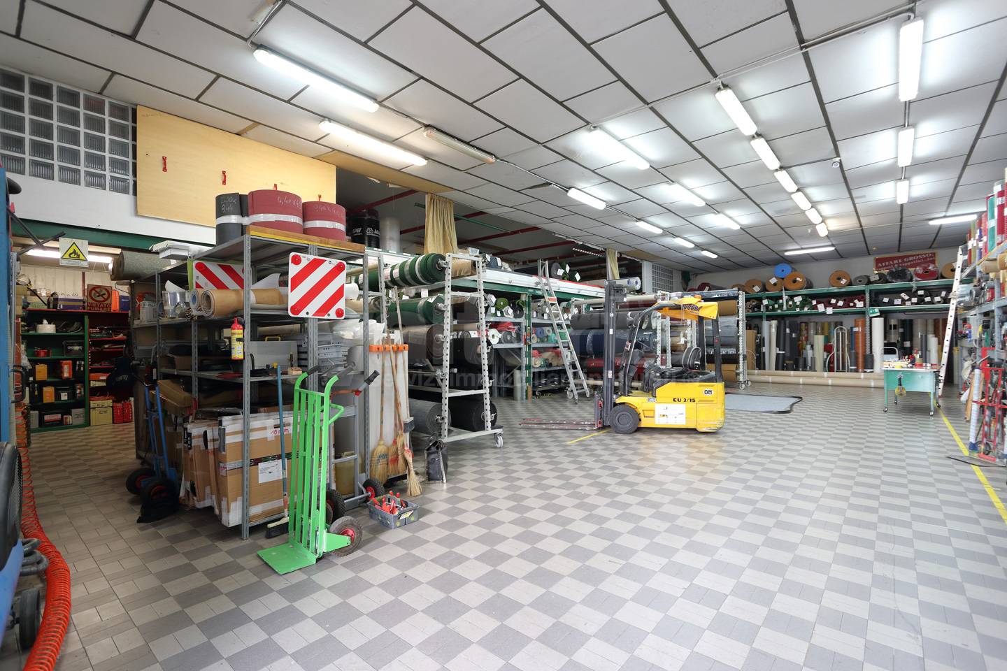 La superficie coperta, pari a circa 490 mq ad uso deposito per i 2/3 circa, mentre la restante superficie prevede uffici e showroom.