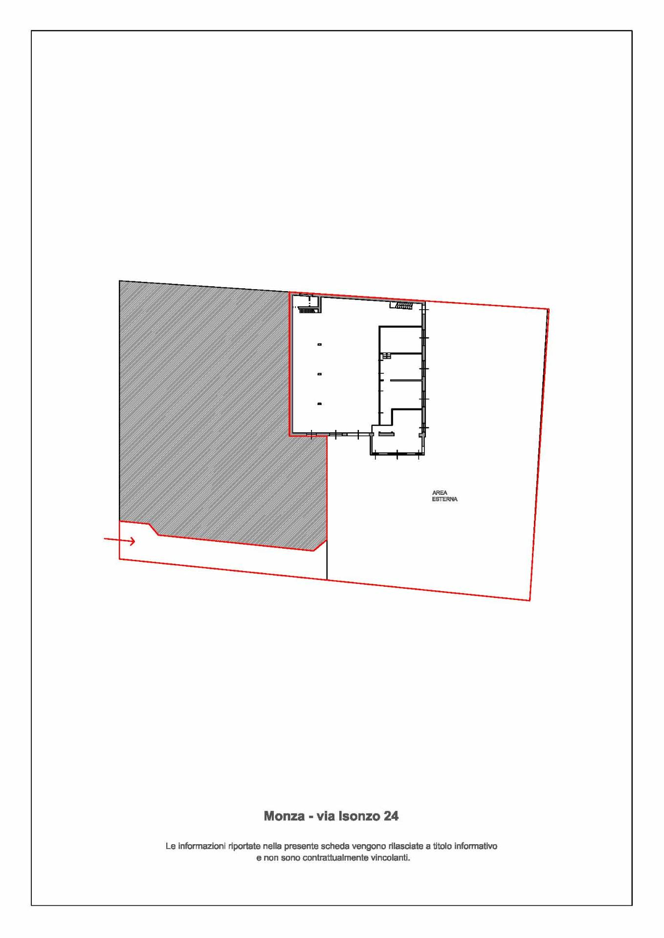 A breve distanza dalla stazione FS di Monza centrale (lato binario 7) capannone con accesso privato regolamentato da cancello e sbarra basculante.