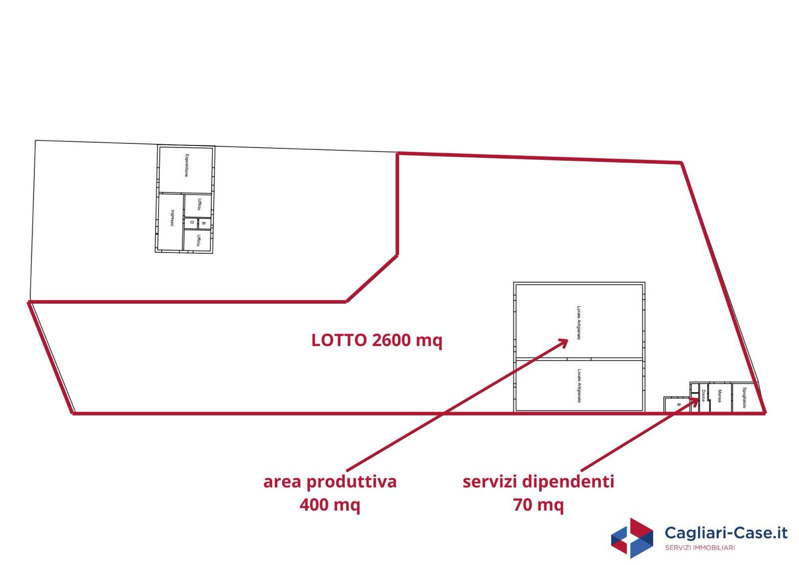 La superficie coperta complessiva di circa 470 mq, cos suddivisi: * 400 mq destinati ad area artigianale/produttiva, con altezze funzionali e accessi idonei ad attivit industriali leggere o laboratori; * 70 mq circa come blocco servizi indipendente sul retro con mensa, spogliatoi e gruppi bagno, riservato al personale.
