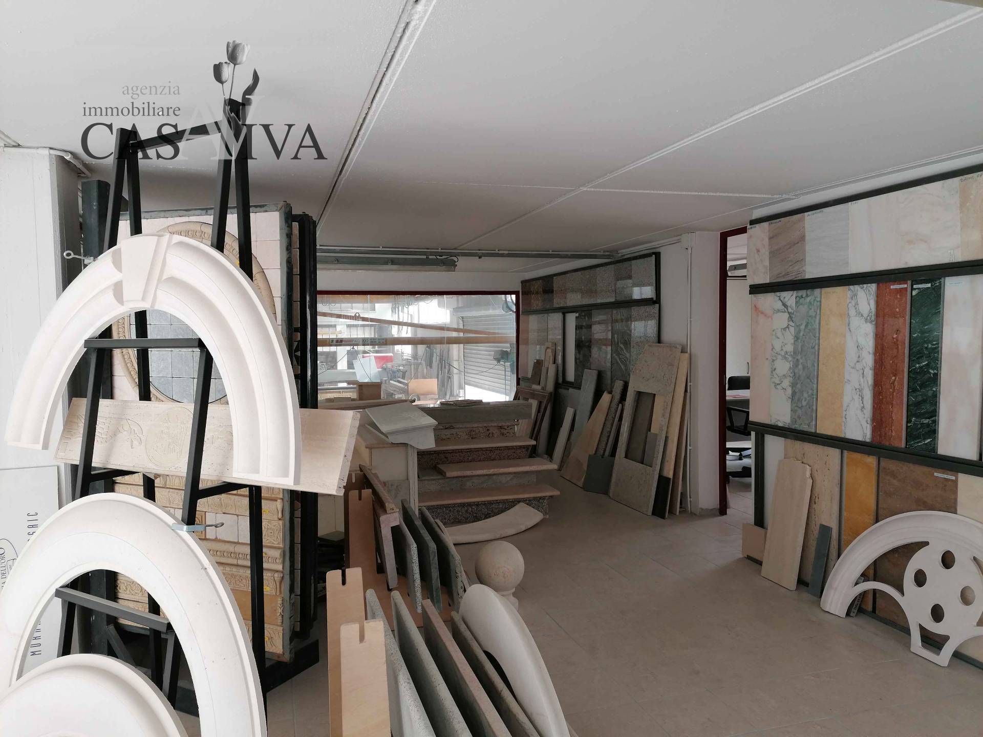 Il fabbricato delle dimensioni totali di mq 1400 circa inserito in un lotto di mq 2120 ed costituito da due strutture comunicanti: - la zona di produzione costituita da un solo piano di mq 800, provvista di carro ponte posto a 7,00 metri di altezza; - la zona di ingresso, esposizione, uffici, servizi e ripostigli vari, collegata con la zona di produzione, costituita da un fabbricato in cemento armato dislocato su tre livelli di mq 190 l'uno, oltre un soppalco tra il piano terra ed il primo di circa mq 60; il piano terra ha un'altezza di 5,00 metri, il primo ed il secondo piano hanno un'altezza di 2,70 metri.