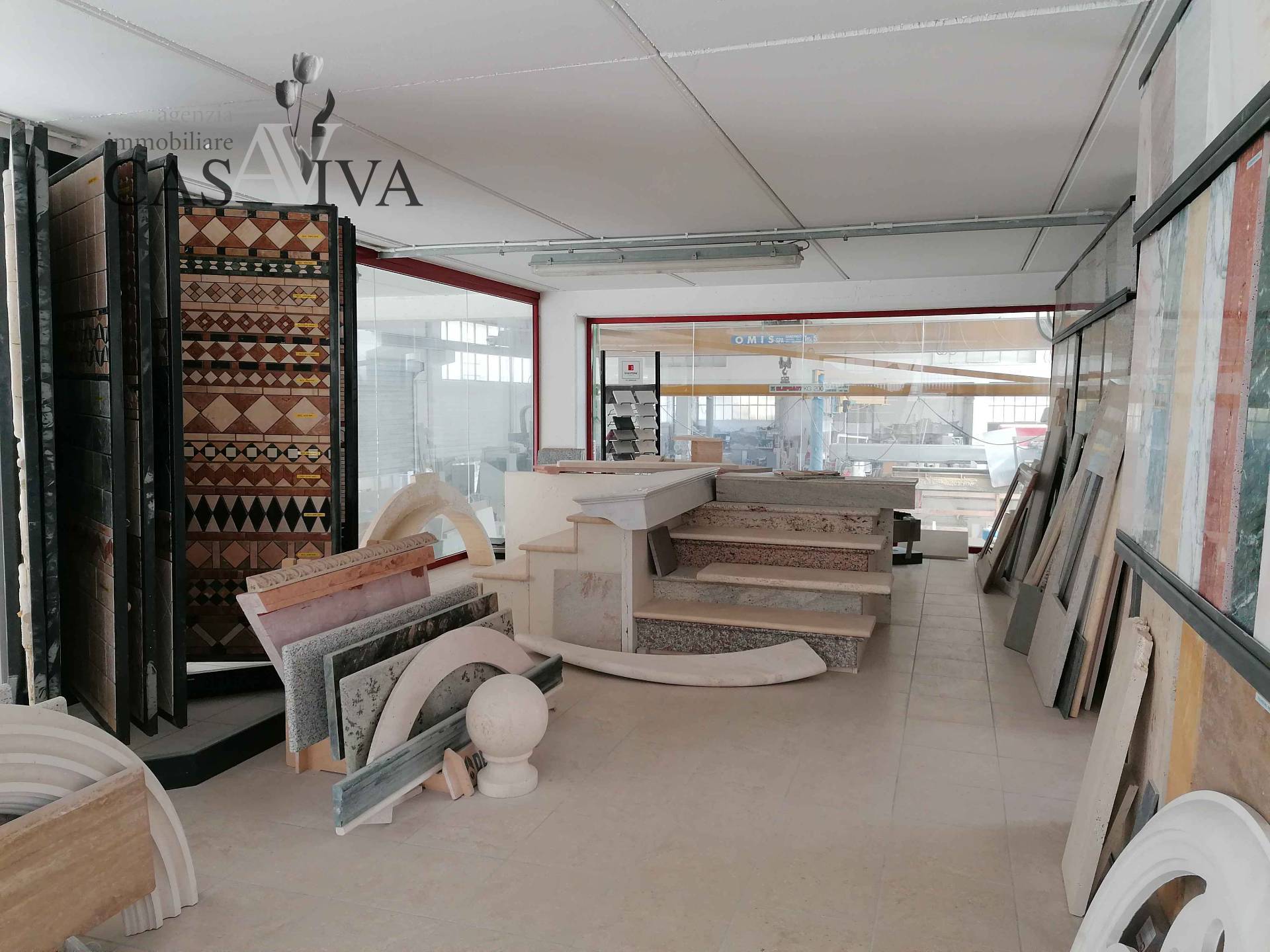 Il fabbricato delle dimensioni totali di mq 1400 circa inserito in un lotto di mq 2120 ed costituito da due strutture comunicanti: - la zona di produzione costituita da un solo piano di mq 800, provvista di carro ponte posto a 7,00 metri di altezza; - la zona di ingresso, esposizione, uffici, servizi e ripostigli vari, collegata con la zona di produzione, costituita da un fabbricato in cemento armato dislocato su tre livelli di mq 190 l'uno, oltre un soppalco tra il piano terra ed il primo di circa mq 60; il piano terra ha un'altezza di 5,00 metri, il primo ed il secondo piano hanno un'altezza di 2,70 metri.