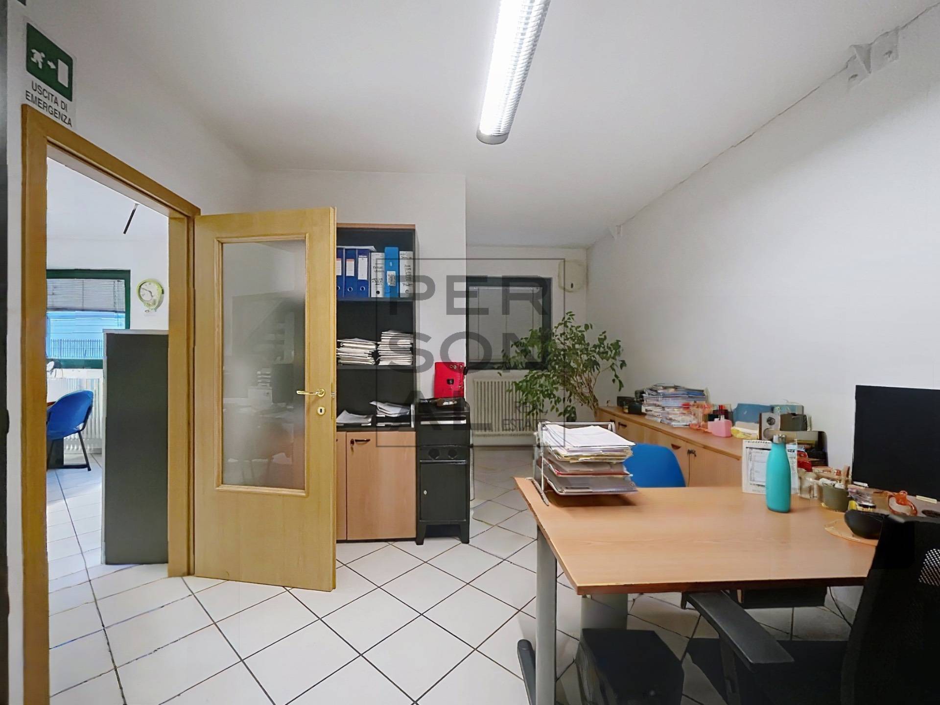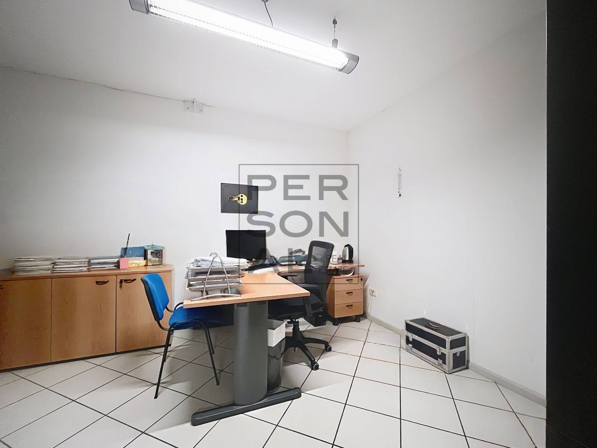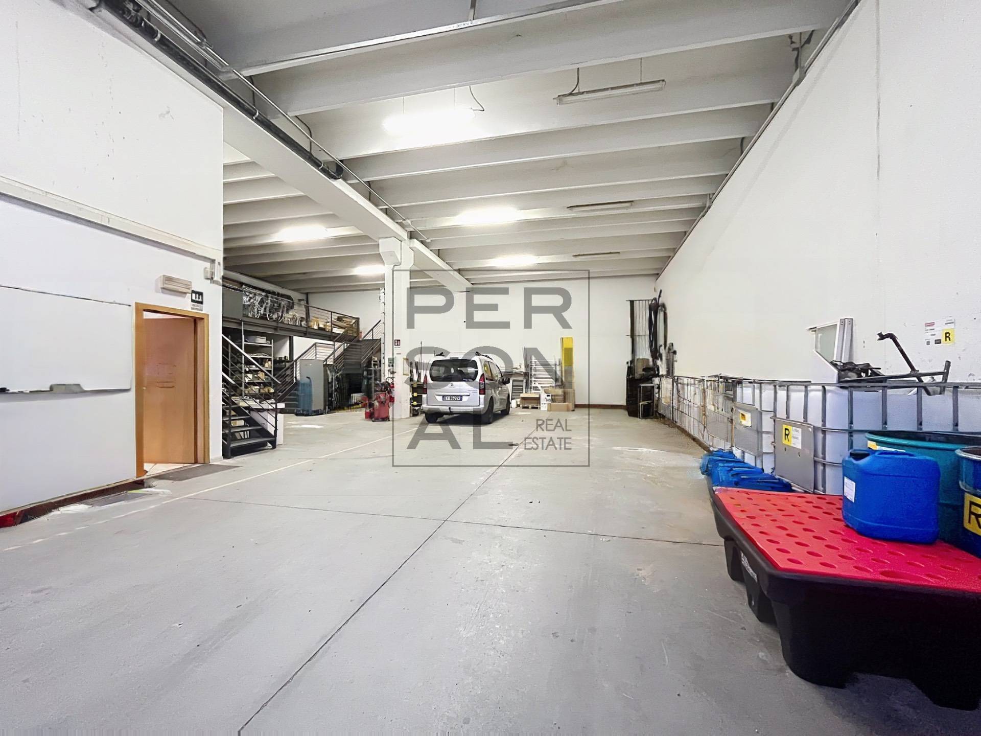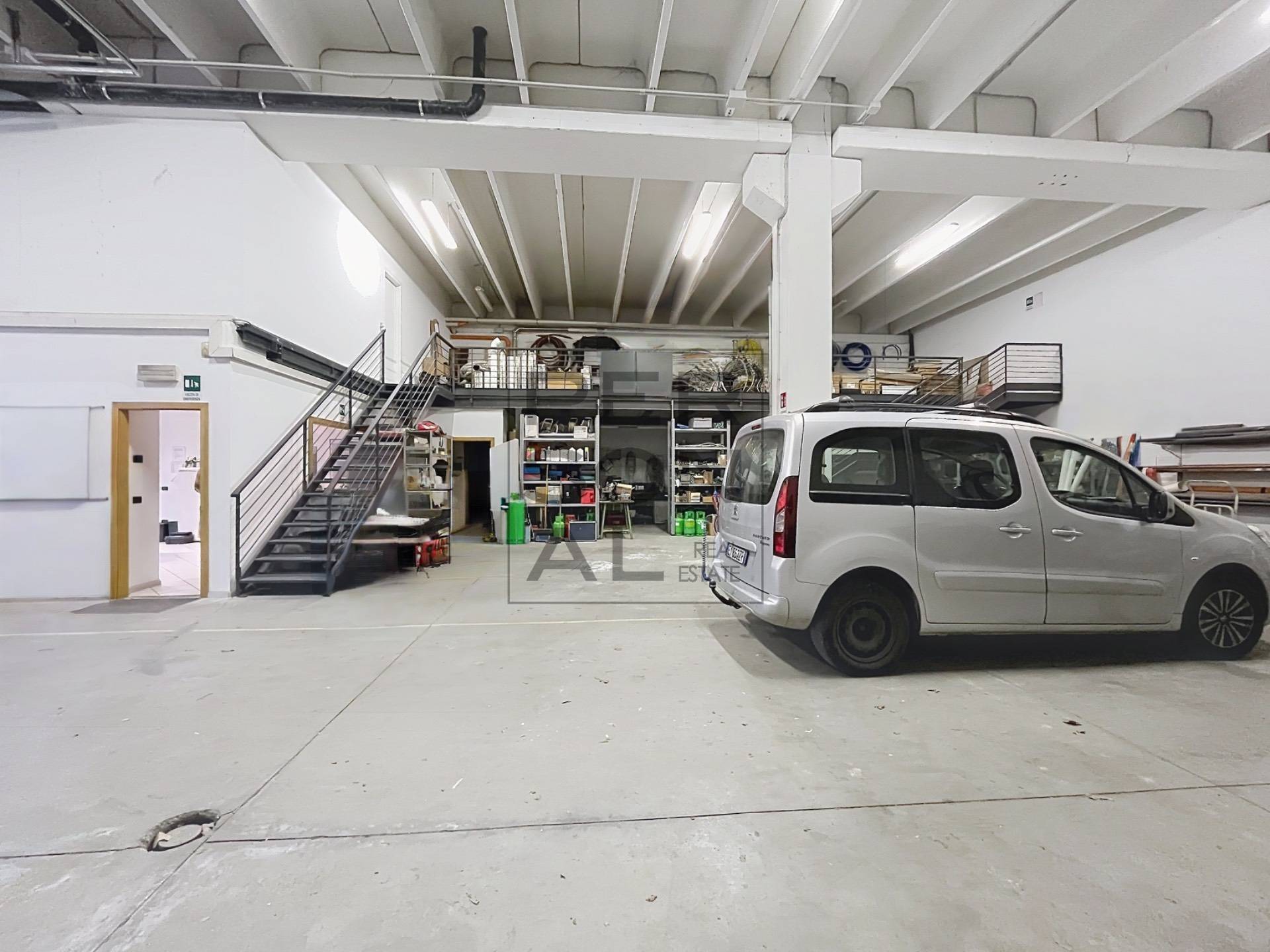 Altezza interna 5,00m. Ci sono 3 UFFICI con 4 postazioni di lavoro, 2 BAGNI di cui uno con la doccia, un locale ARCHIVIO, un ampio SOPPALCO, un MAGAZZINO e una zona LABORATORIO.