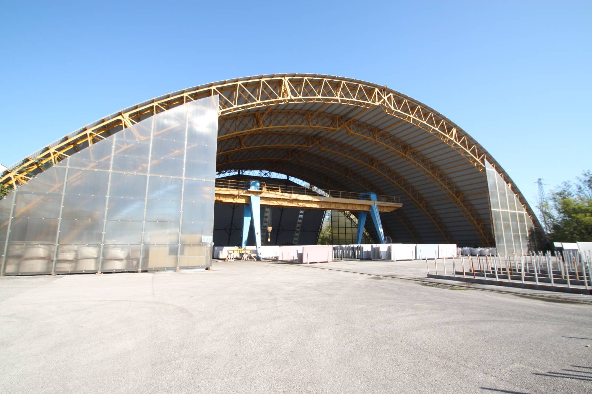Villesse, complesso industriale costituito da capannoni completi di uffici, magazzini e mensa per una superficie coperta di complessivi 15.000 mq, insistenti su unarea scoperta di 65.000 mq avente un indice di edificabilit di 0,50 mq. Laltezza degli edifici variano da un minimo di 7,10 m a un massimo di 10,60 m con una dotazione di n°6 carro ponte.
