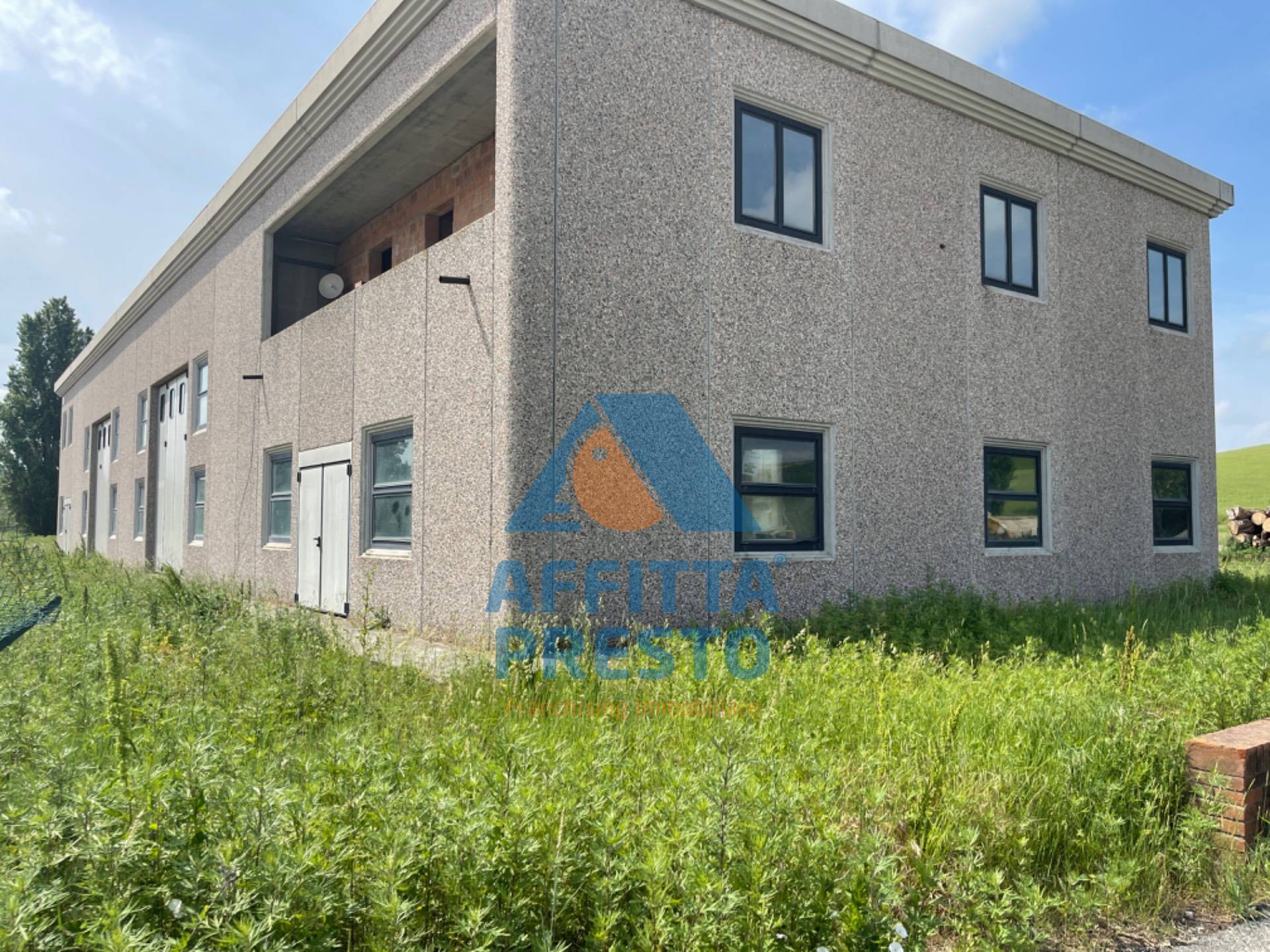 Libero su 4 lati, due portoni ampi per scarico e carico ed altri due sul retro.