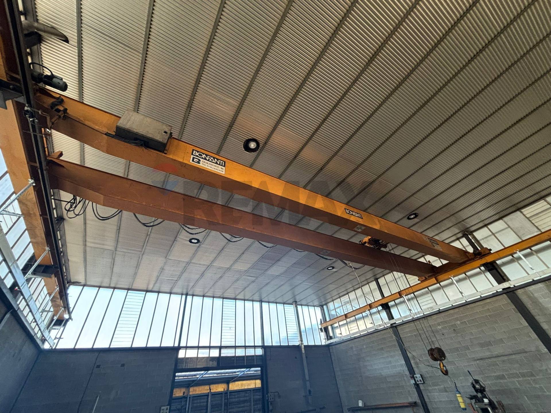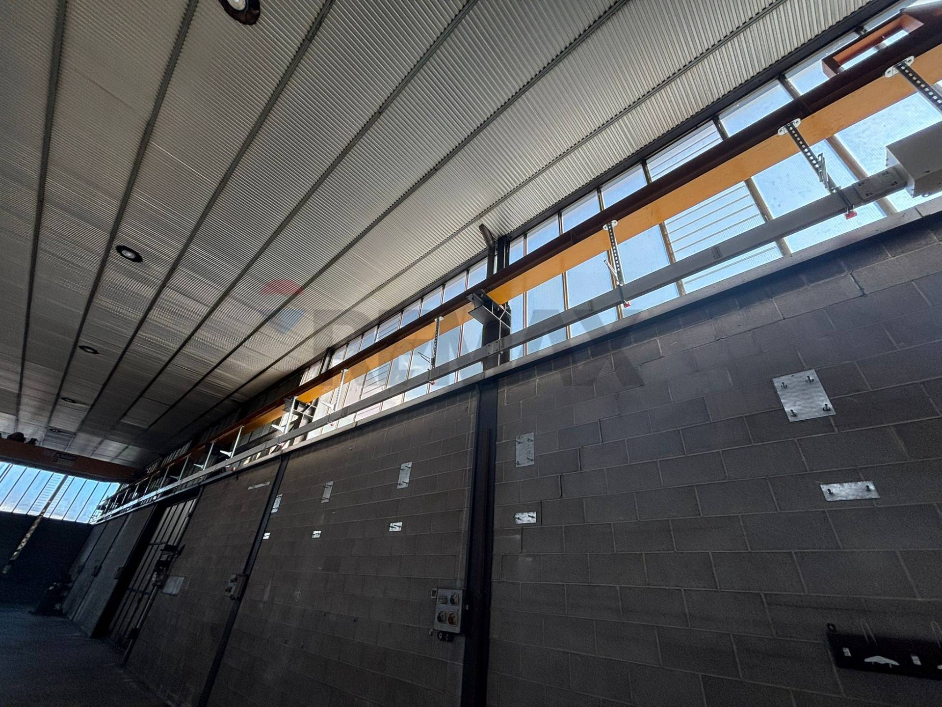 La struttura portante verticale e orizzontale in acciaio con tamponamenti in blocchi di cap ed munita di carroponte ( da revisionare) che ha corsa per tutta la lunghezza del capannone.