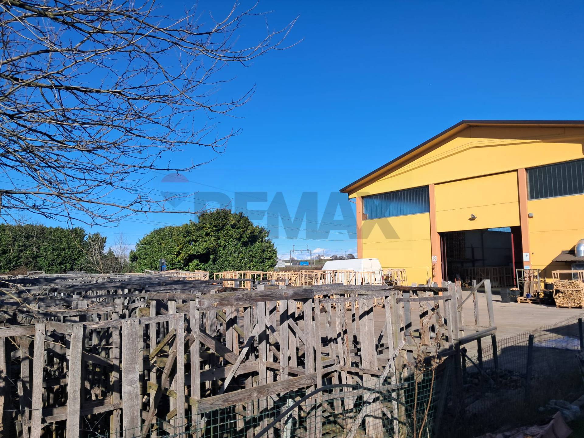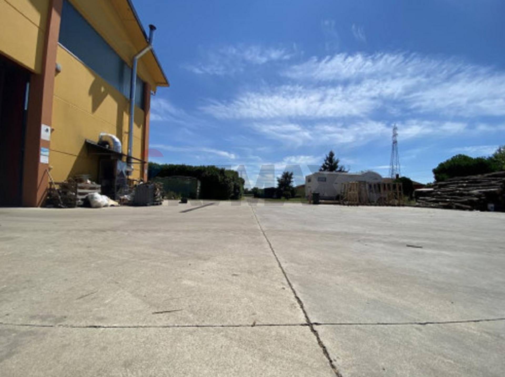 L'area su cui insiste il bene pari a circa 7000 metri quadrati , totalmente recintata . Lo spazio all'aperto per circa 600 mq ( fronte capannone e sul perimetro) adibito a piazzale in battuto di cemento e corsie perimetrali all'edificio , il resto a verde anche coltivabile.