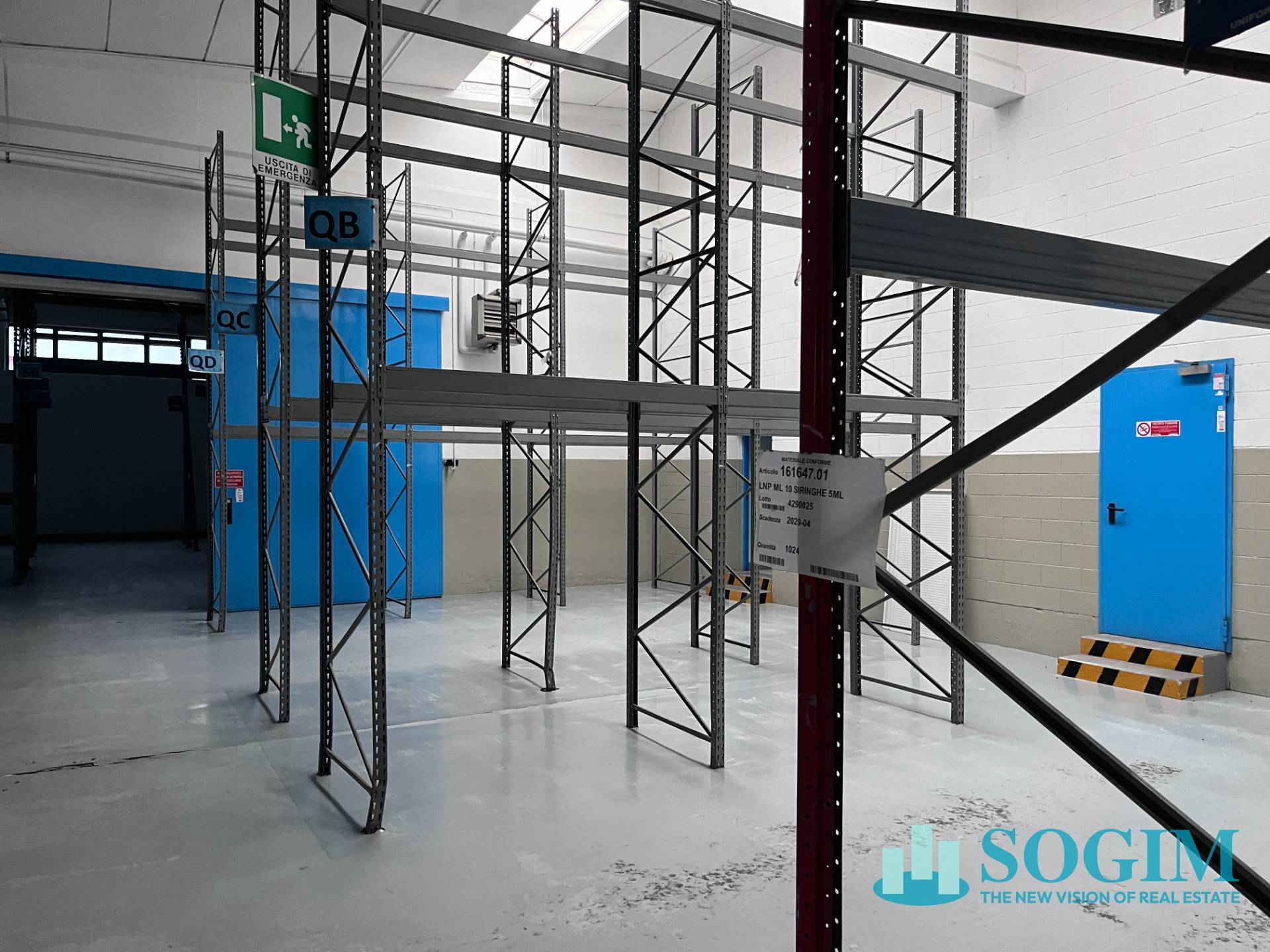 L'immobile dotato di impianto di illuminazione, impianto elettrico, aria compressa e impianto di riscaldamento oltre a scaffalature gi installate nella parte deposito.
