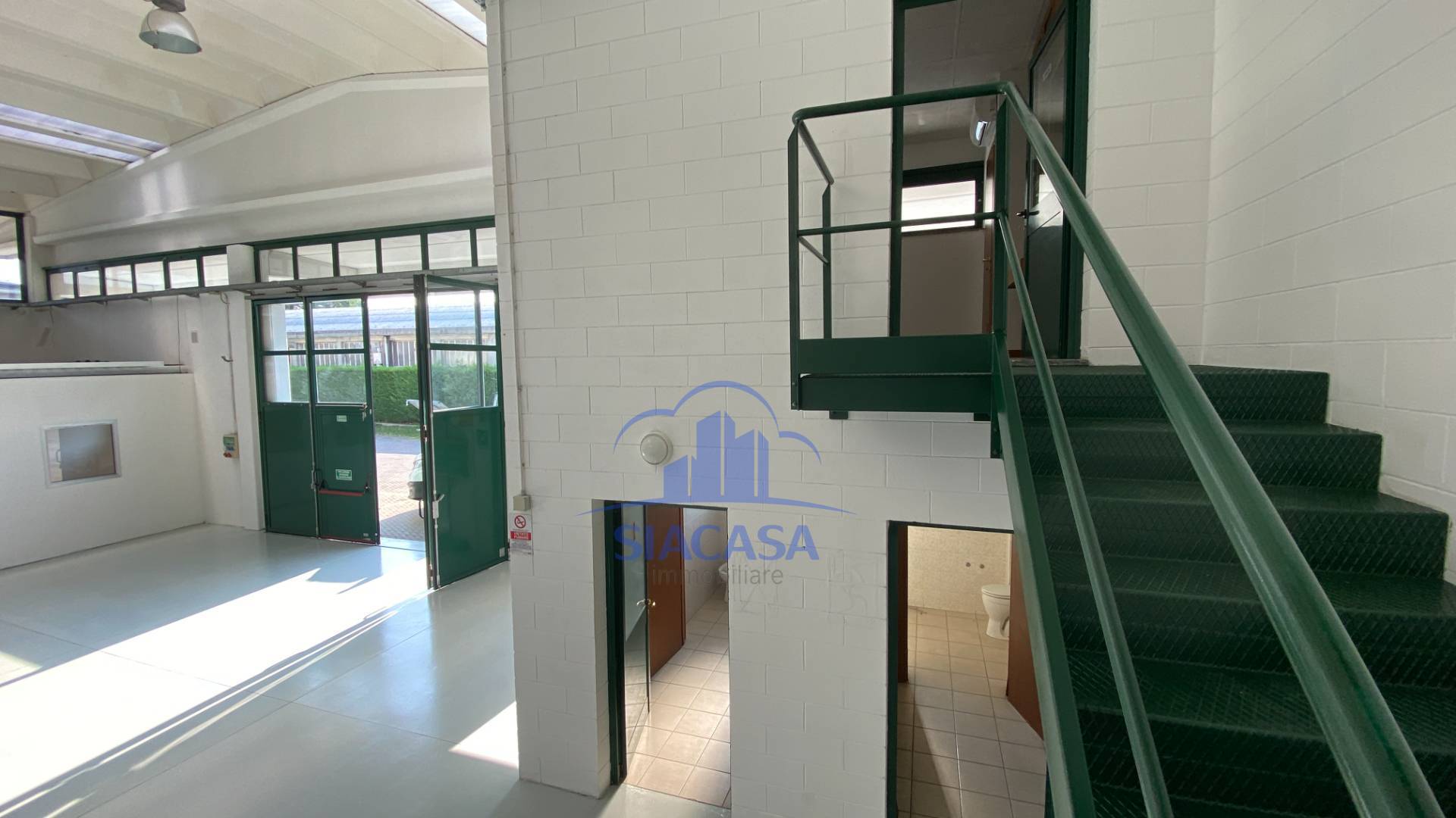 La struttura si sviluppa su due livelli: al piano terra sono presenti locali ad uso deposito e servizi, mentre al piano primo collocato un ambiente adatto ad ufficio o area direzionale.