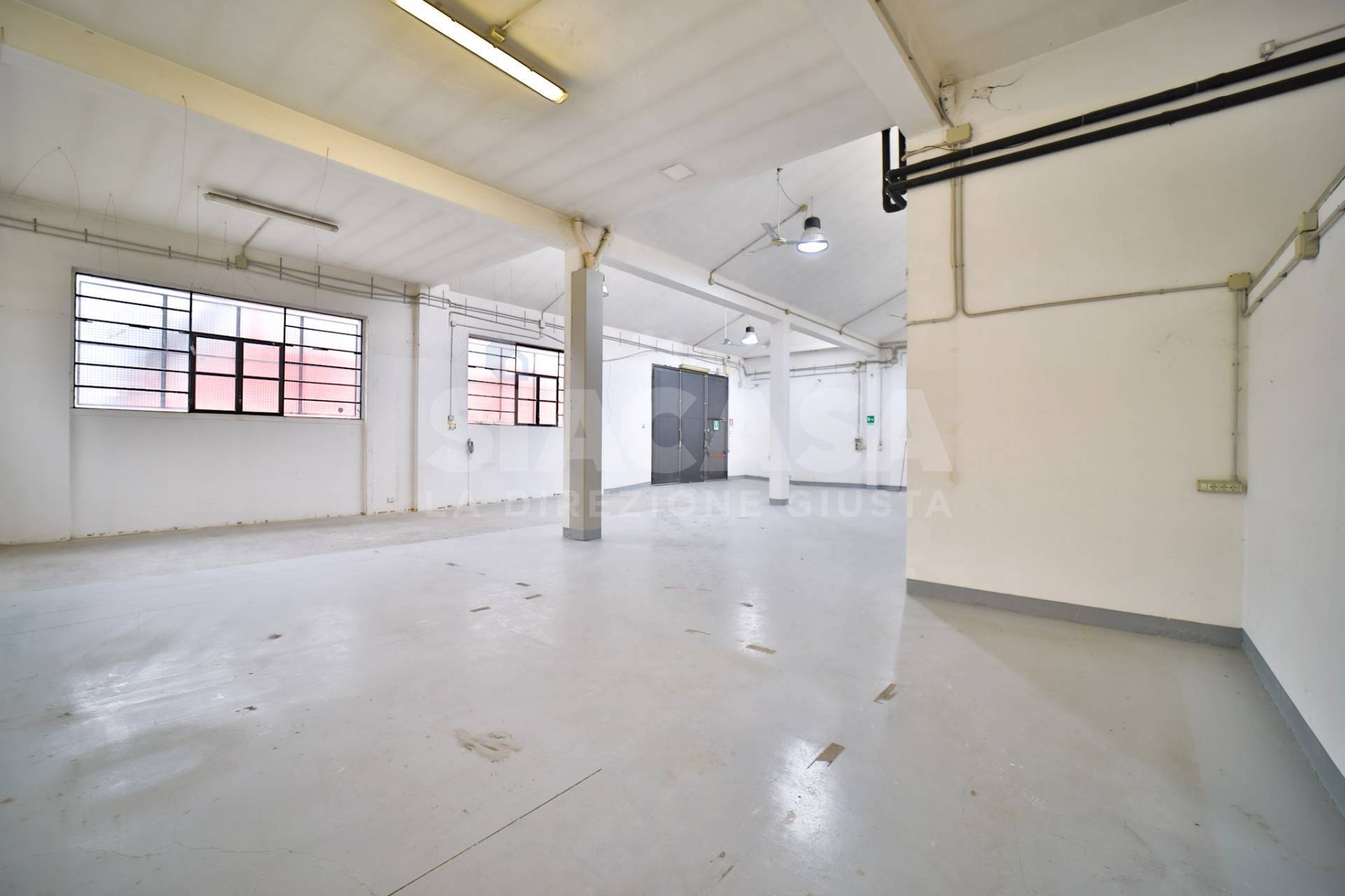 Gli spazi interni si presentano in buono stato manutentivo, con pavimentazione industriale e impianti esistenti.