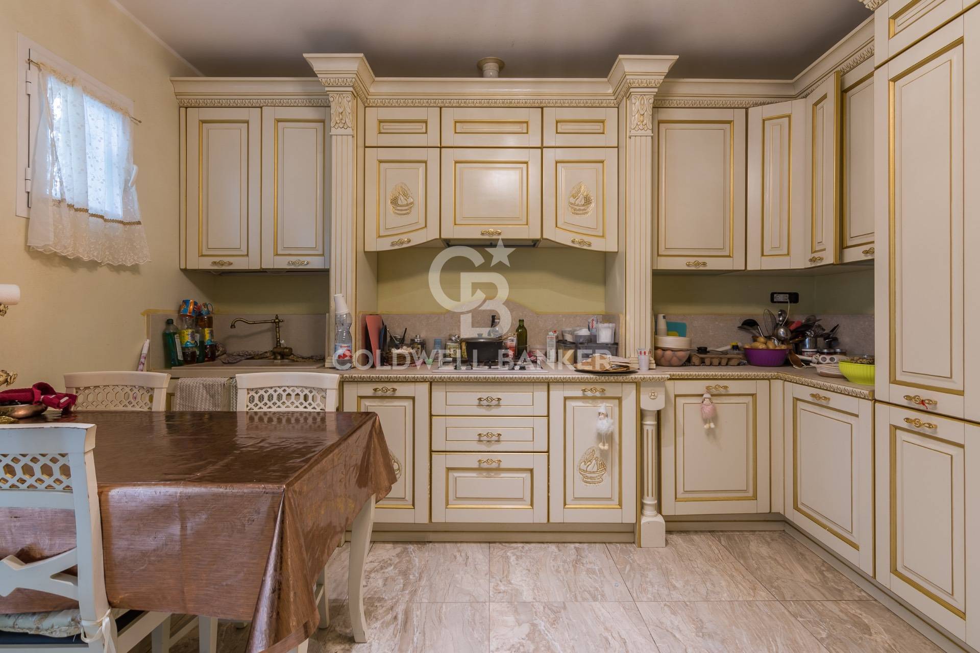 Labitazione principale si sviluppa al piano primo per una superficie di circa 100 mq, ed composta da: soggiorno luminoso, cucina abitabile, due camere da letto, due bagni, balconcino/veranda con vista mare. Al piano secondo si trova un ampio sottotetto di circa 90 mq, collegato internamente, utilizzabile come spazio multifunzionale (studio, area relax, hobby o deposito), conteggiato al 25% ai fini commerciali, secondo i criteri dellAgenzia delle Entrate.