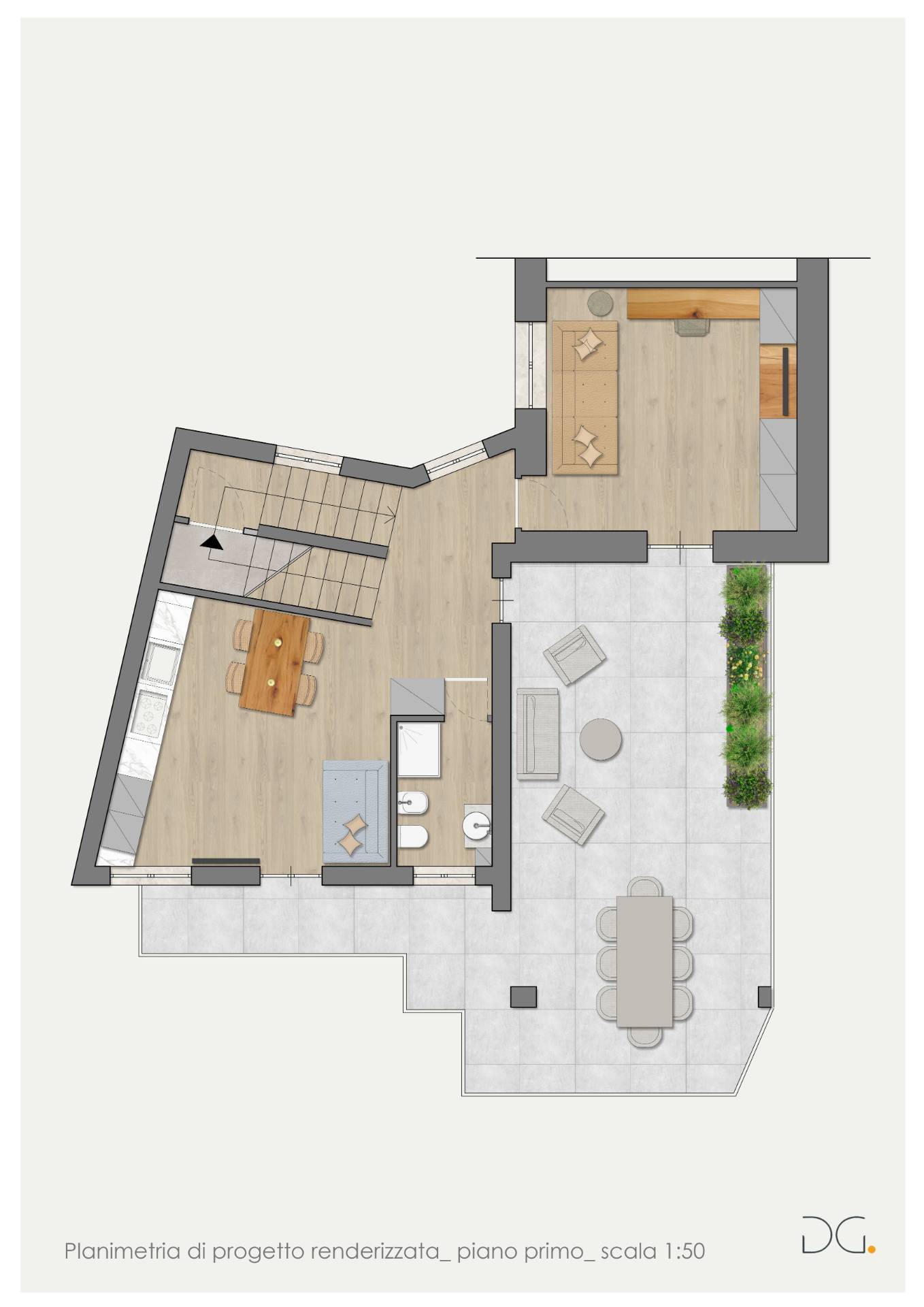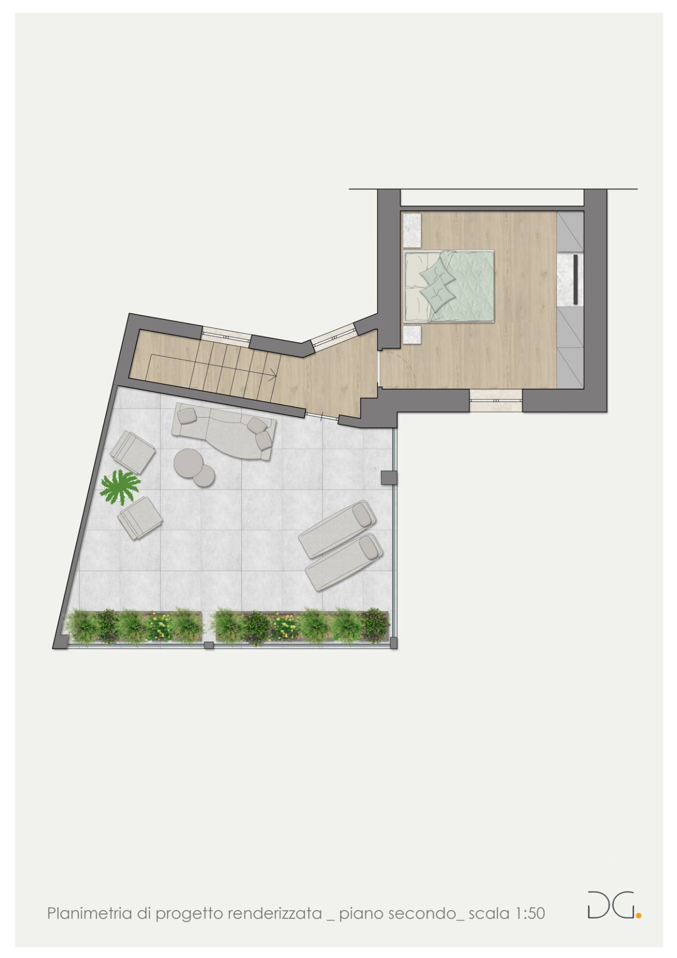 ° Piano Terra Appartamento di 49,6 mq oltre balcone di 7.8 mq Appartamento di 36,8 mq Soluzioni intime e funzionali, perfette per giovani coppie o come investimento da mettere a reddito.