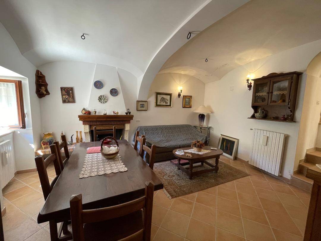 Al piano terra veniamo accolti da un comodo ingresso che ci conduce ad un'ampia zona giorno con cucina a vista corredata da camino e caratteristiche volte a crociera; una comoda scala ci conduce al piano superiore dove troviamo una camera da letto matrimoniale con balcone da cui si gode di una splendida vista sulle montagne, una cameretta ed il bagno.