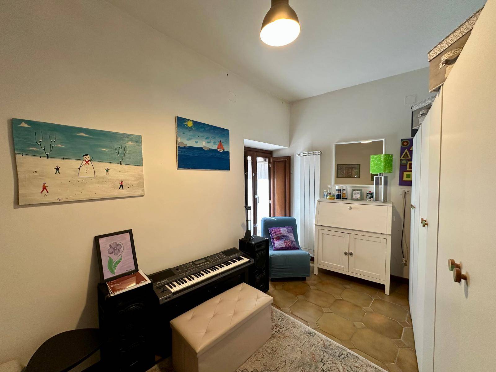 Al primo piano troviamo una camere matrimoniale, una cameretta e bagno con balcone.