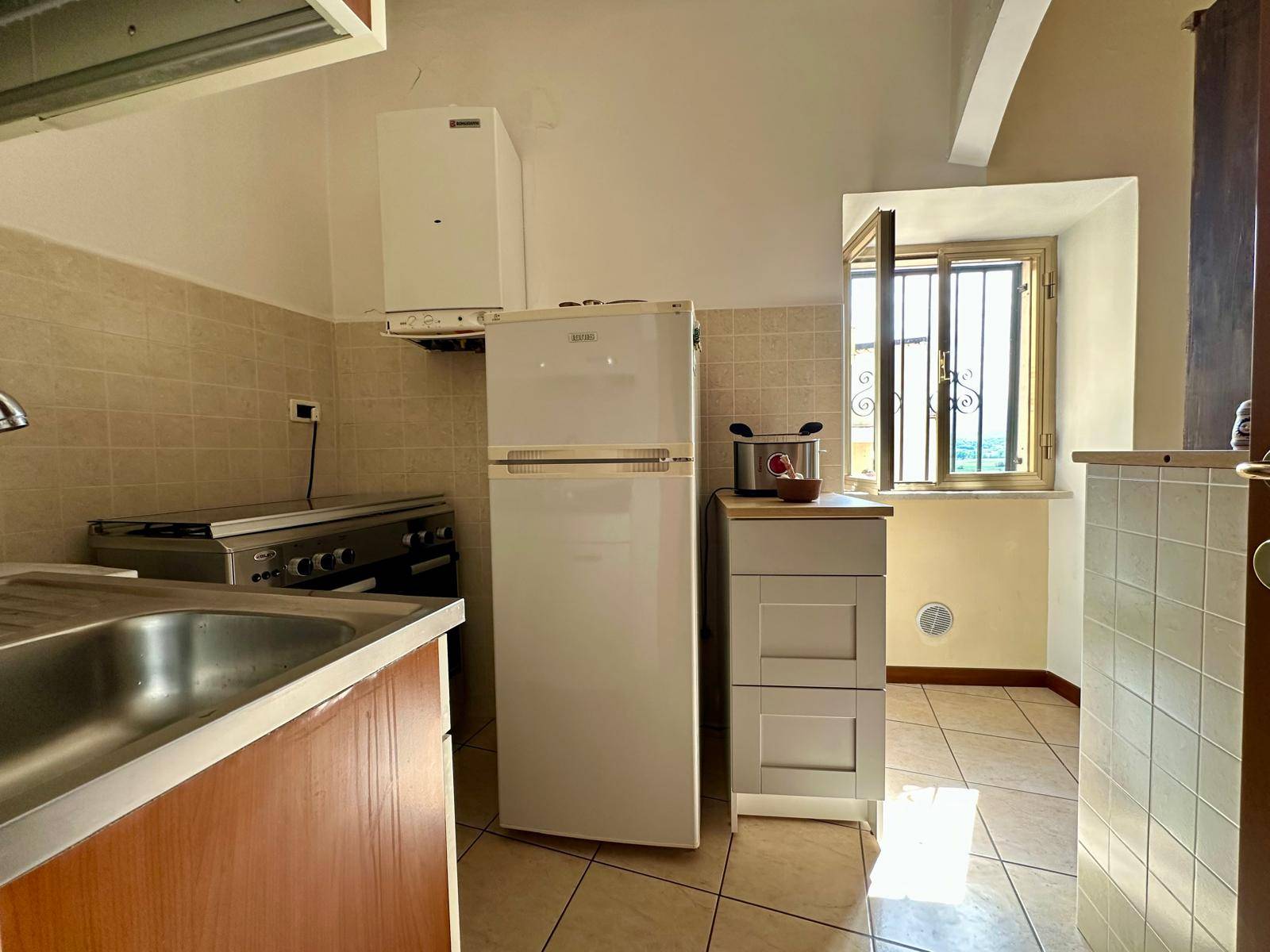 Una scala a chiocciola ci conduce al primo piano dove troviamo un disimpegno, camera matrimoniale con balconcino e botola per accedere al terrazzo di 20 mq ca. e una cameretta.
