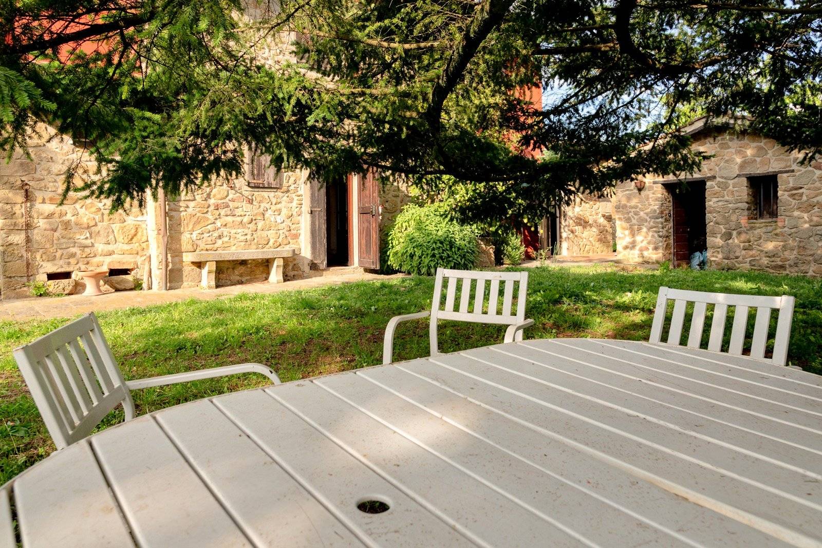 Il casale disposto su due livelli fuori terra ed composto da: - 4 camere da letto - 2 spaziosi salotti, entrambi dotati di grandi caminetti (uno con forno per pizza e pane) - Cucina e tinello - Bagno - Locale caldaia con lavanderia All'esterno, poco discosto dal fabbricato principale, troviamo un ampio garage utilizzabile anche come rimessa per attrezzi agricoli, una suggestiva dependance in pietra e una terrazza panoramica che offre una vista impareggiabile.