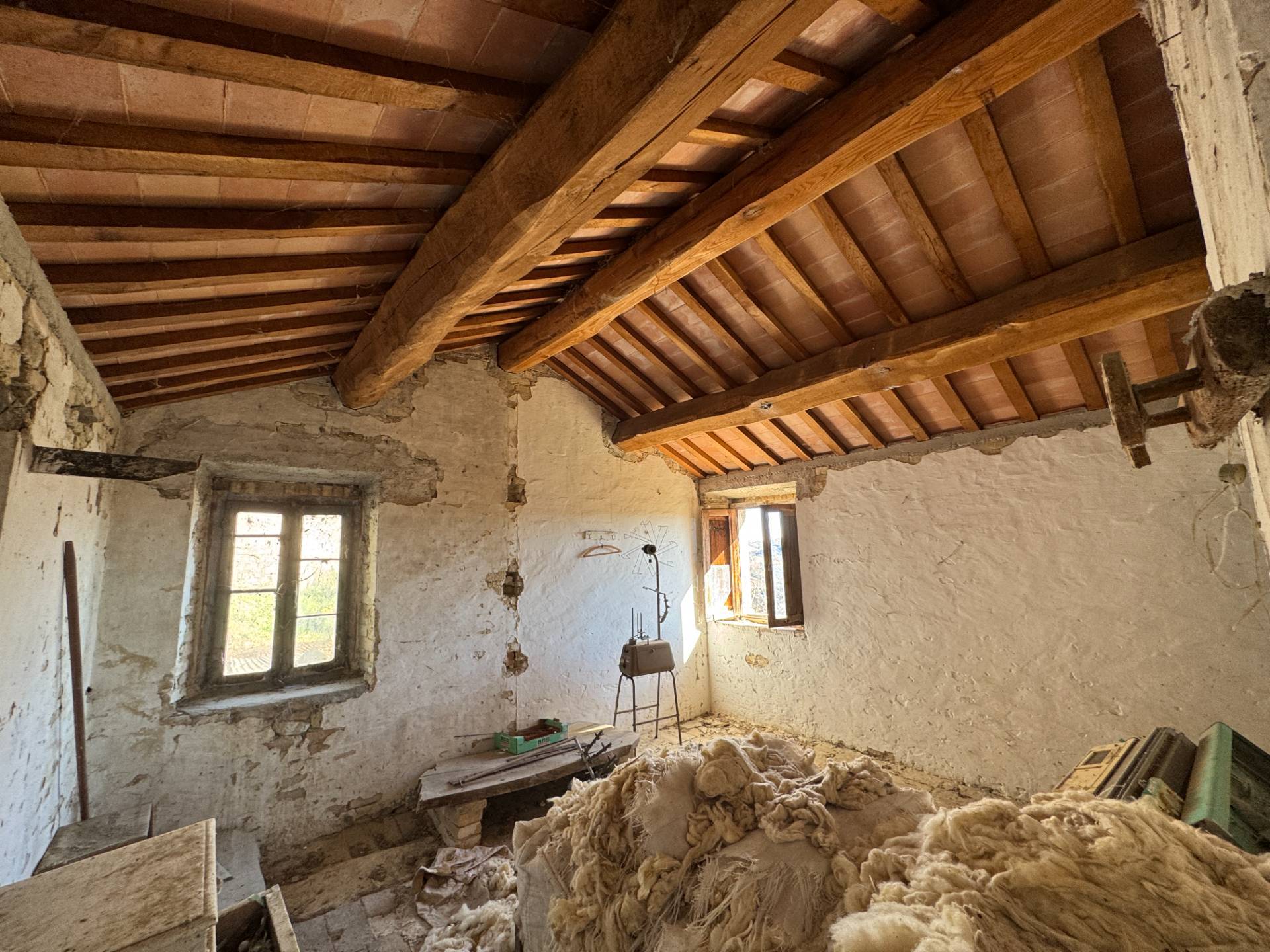 Gli immobili necessitano di una ristrutturazione completa ad eccezione del tetto in travi in legno che stato realizzato di recente.