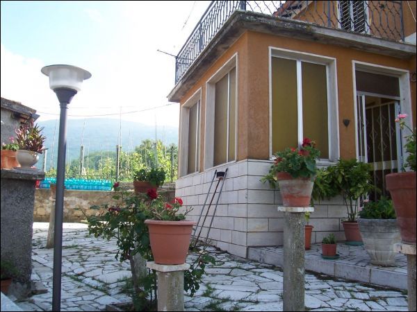 In panoramic position with sight on the valley until the sea,a single house of approximately 150 m2 disposed on two levels:Ground floor(78 m2) with a closed porch used as a lounge,kitchen,living room,warehouse with external entrance and ***.*******.** floor(66 m2) with two big bedrooms,a small bedroom,bathroom and a 12 m2 ***.*******.** extension of 24 m2 on the two floors with oven and ***.*******.** is 25 m2 and the courtyard is ***.*******.** for summer or winter ***.*******.** sunny and panoramic position Contatta l'inserzionista