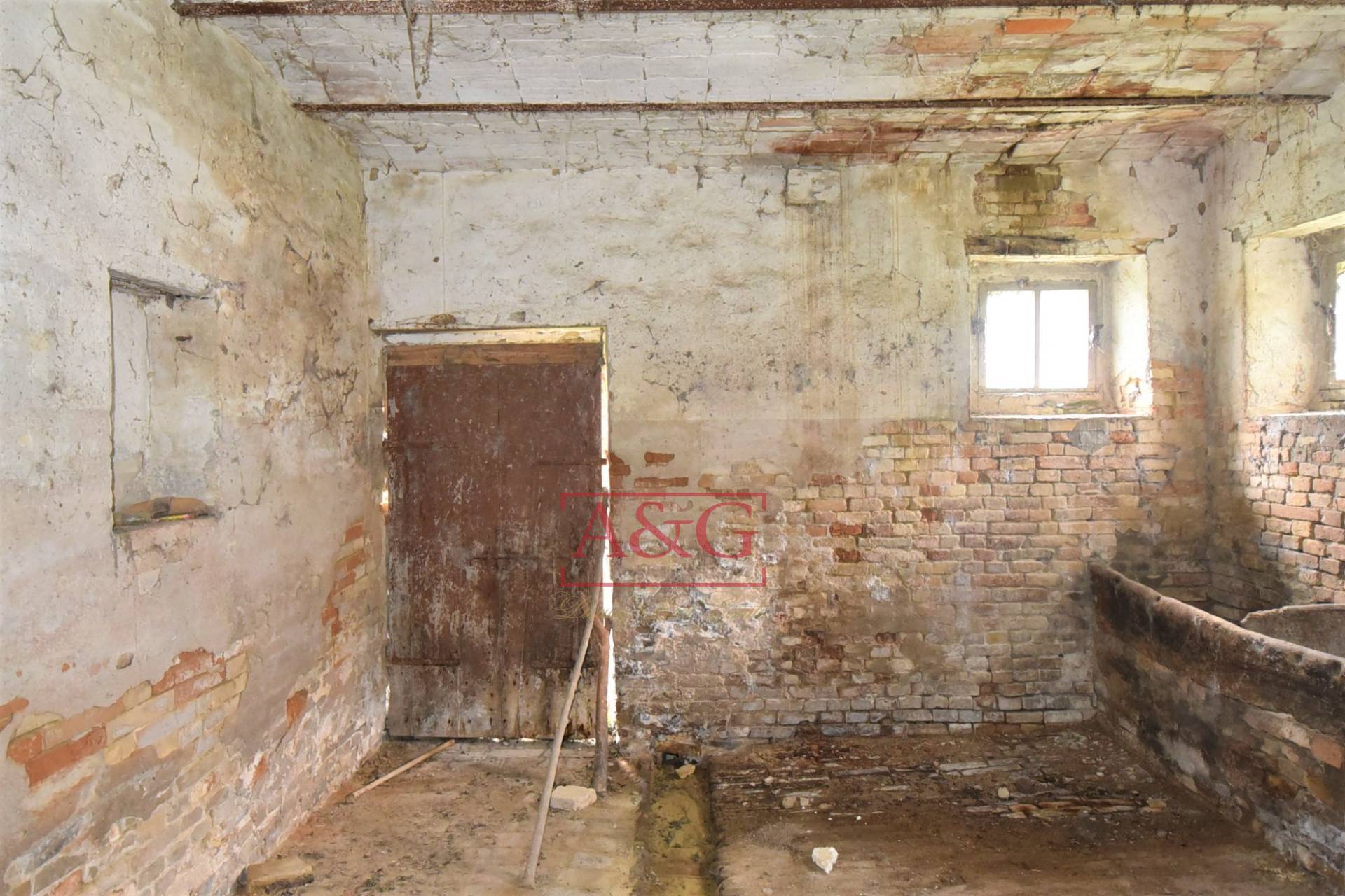 La struttura portante del fabbricato in muratura con mattoni a faccia vista, solai con travature in legno, travetti e pianelle, tetto a due falde con struttura portante in legno e copertura in coppi, il tutto per una superficie di circa 230 mq, con altezza media 2,70 mt. l'accesso al piano primo garantito da una scala esterna.