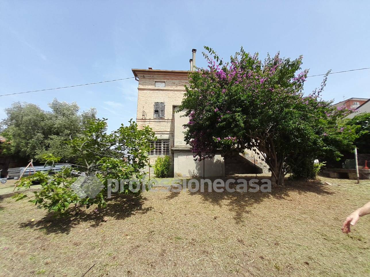 Si trova nella periferia di Sant'Elpidio a Mare, vicina alla via principale, ha un potenziale; circondata da un ampio giardino privato e un terreno circostante.