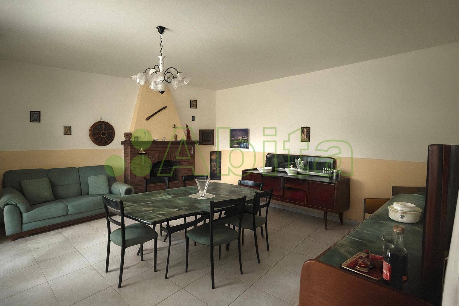 Composizione dell'abitazione principale: Piano terra: soggiorno ,due cucine,bagno,grande stanza attualmente adibita ad uso disimpegno,con acesso diretto al giardino.