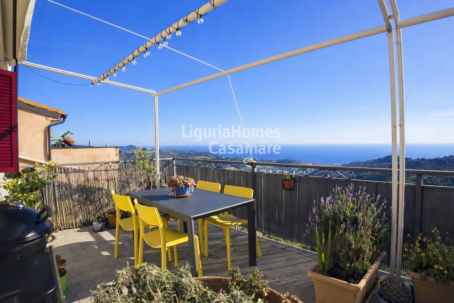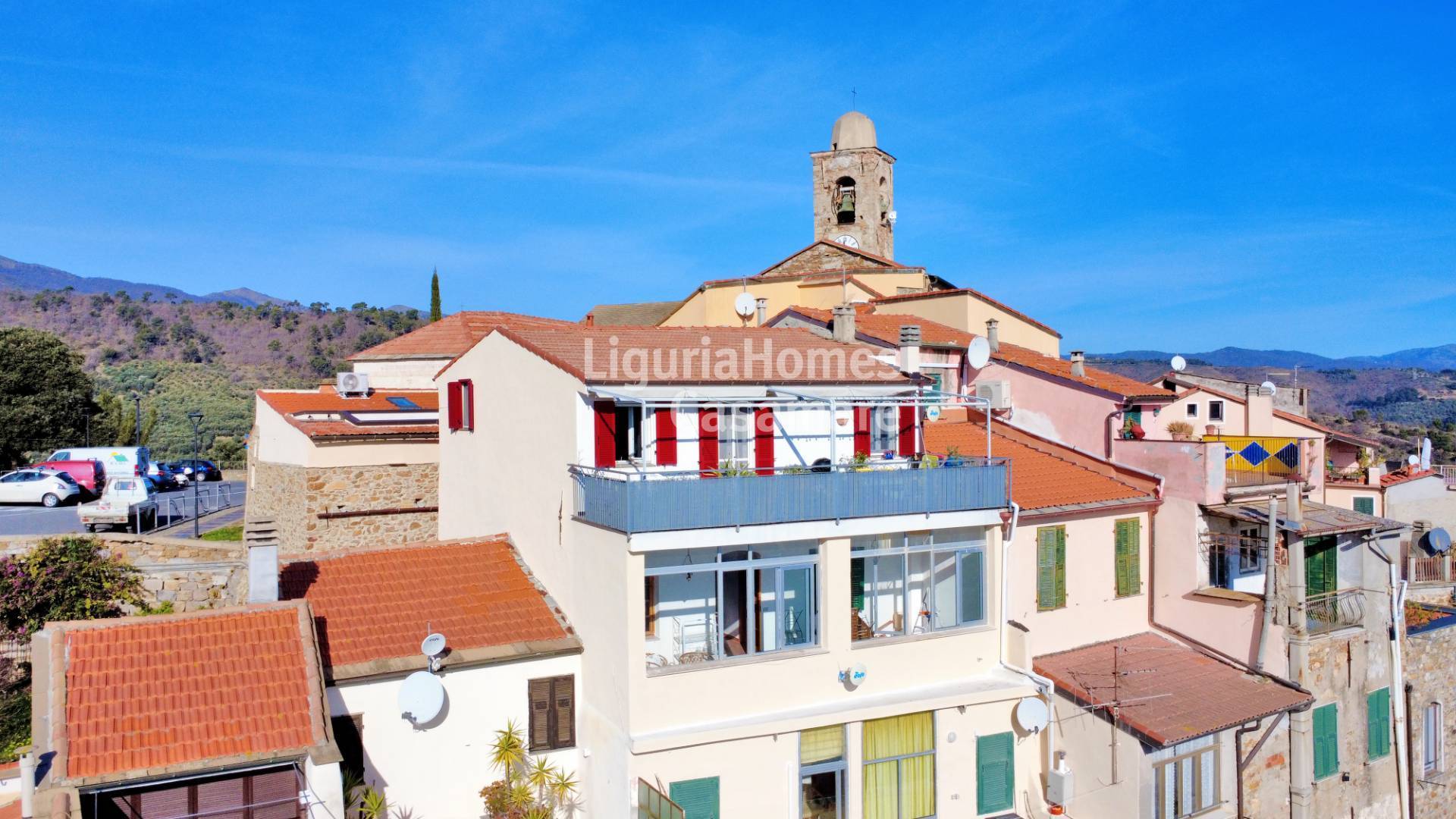 Suggestiva casa di paese con torretta, terrazzo e spettacolare vista mare in vendita a Lingueglietta, Cipressa.
