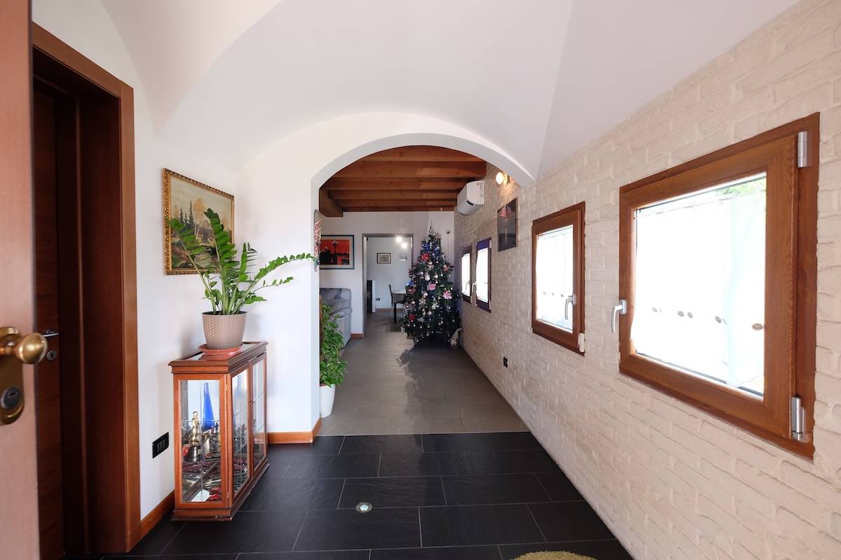 Ingresso su disimpegno con primo bagno, soggiorno separato, zona pranzo/cucina open space con caminetto, cuore caldo e conviviale della casa. Dalla cucina si accede direttamente alla corte esterna oppure, tramite disimpegno con centrale termica/lavanderia, si torna al secondo ingresso sul portico.