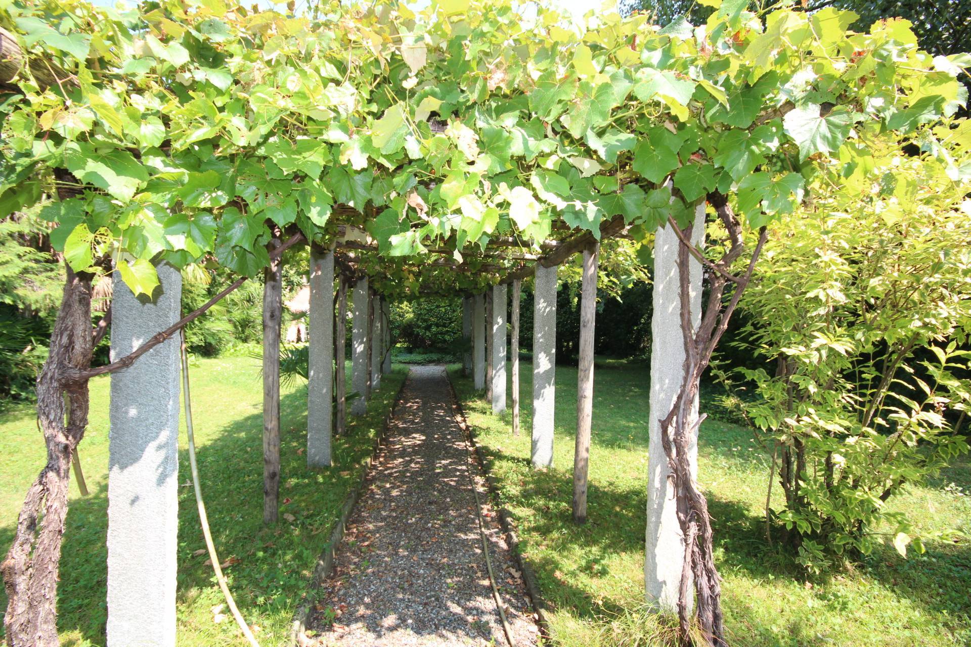 Dallesterno non ci si pu immaginare la bellezza antica che appare non appena si varca il portoncino in legno: una corte di 80 mq. pavimentata in sasso con alcune statue, una casa con colori mediterranei e con un lungo balcone che corre sulle tre facciate ed infine 700 mq di giardino pianeggiante, racchiuso da un muro di cinta originale, con angoli fioriti, tavolini in sasso, aiuole, statue, vialetti e con un pergolato duva che conduce fino allabitazione.