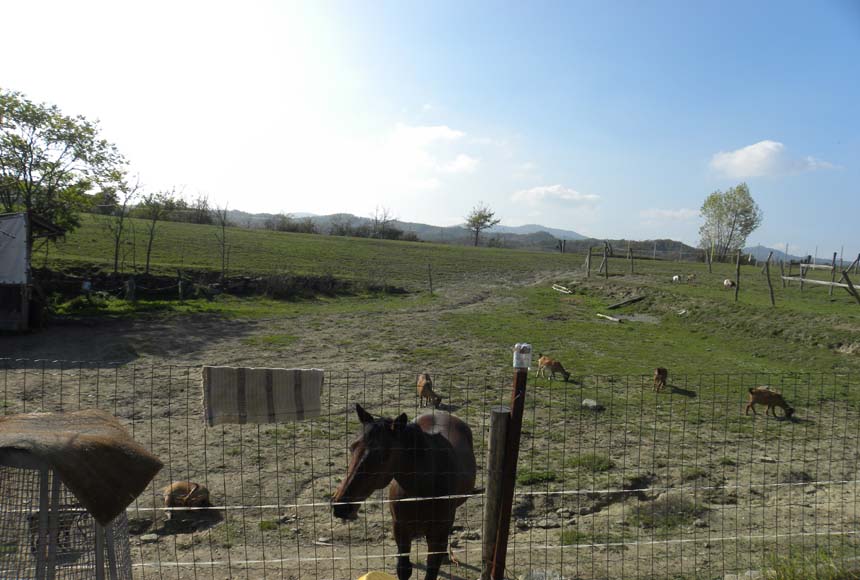 Il fabbricato immerso in appezzamento di terreno, in unico corpo, di circa 12.000 mq. interamente recintati.