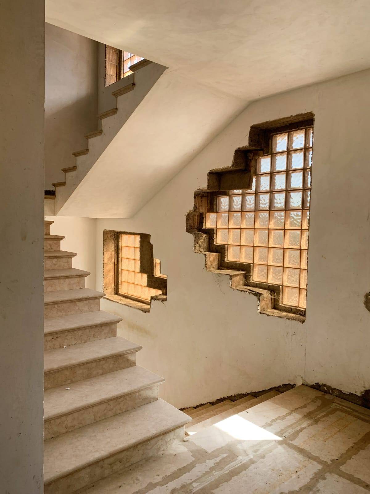 Tutta la struttura completa di infissi, il piano terra con destinazione commerciale completo e funzionale, la corte esterna rifinita e recintata, il piano primo e secondo sono allo stato grezzo, scale e terrazzi da completare con corrimano e ringhiere.