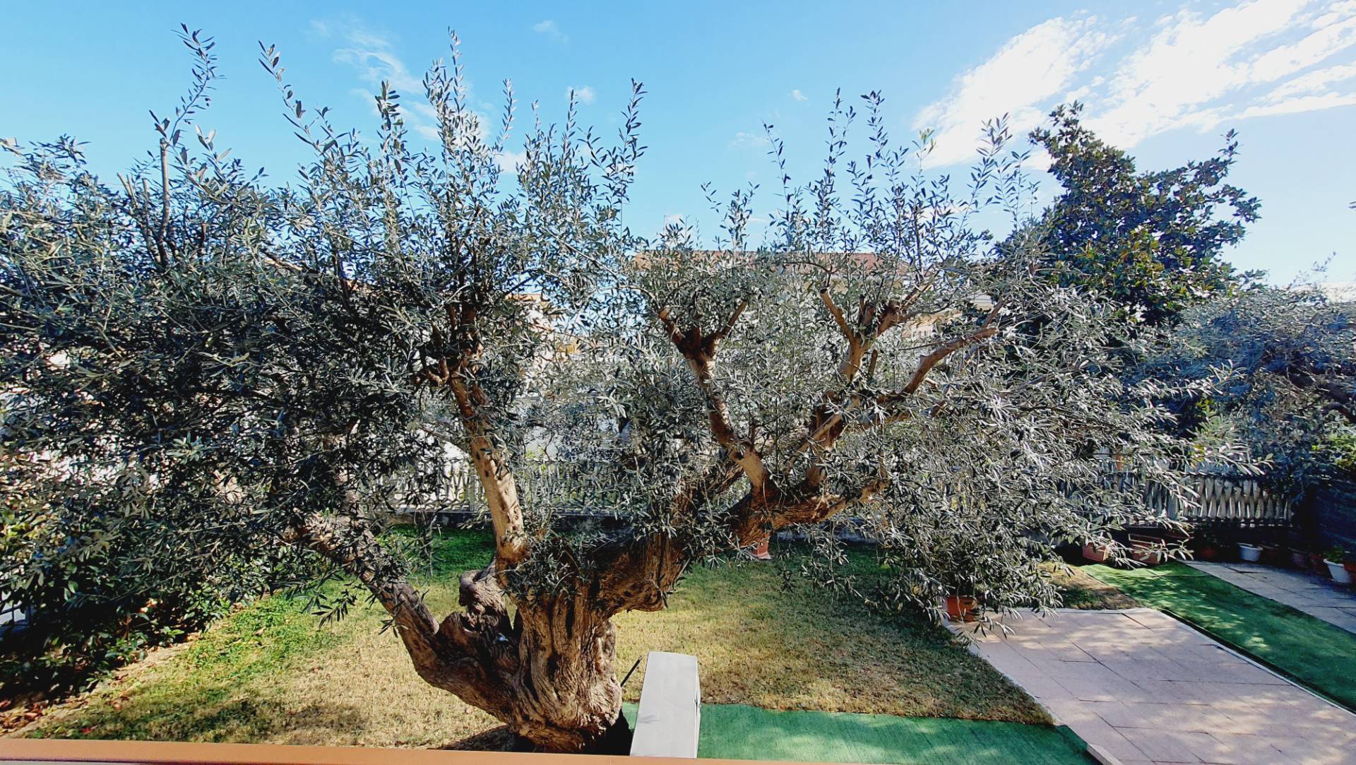 Il fabbricato, posto in posizione residenziale su quattro livelli per complessivi mq 500 e cosi composto, da due unita immobiliari con ingresso autonomo: Prima unit, composta da: Piano seminterrato: garage di 100 mq, con accesso da rampa esterna, o scala pedonale; Piano terra: di mq 80, ingresso su soggiorno con camino, cucina abitabile, bagno con doccia e finestra, due terrazzi da 10 mq ciascuno; Piano primo: di mq 80, si accede tramite scala interna, composto da tre camere, di cui due matrimoniali ed una doppia, bagno con doccia e finestra, due balconi da 5 mq ciascuno; Sottotetto: di 120 mq con altezza massima di 2,45 mt, minima 0,80 mt, completamente arredata e fruibile, dotato di bagno, mentre soggiorno e camera, sono open space Seconda unit, composta da: Piano terra: di mq 60, ingresso su soggiorno con camino, cucina abitabile, bagno con doccia e finestra, due terrazzi da 10 mq ciascuno; Piano primo: di mq 60, si accede tramite scala interna, composto da due camere matrimoniali, bagno con doccia e finestra, due balconi da 5 mq ciascuno; L'immobile, libero su quattro lati, insorge su un lotto complessivo mq 500 com ampio spazio a giardino e corte, parte pavimentata, il resto in erba, dove troviamo due ulivi ultracentenari.