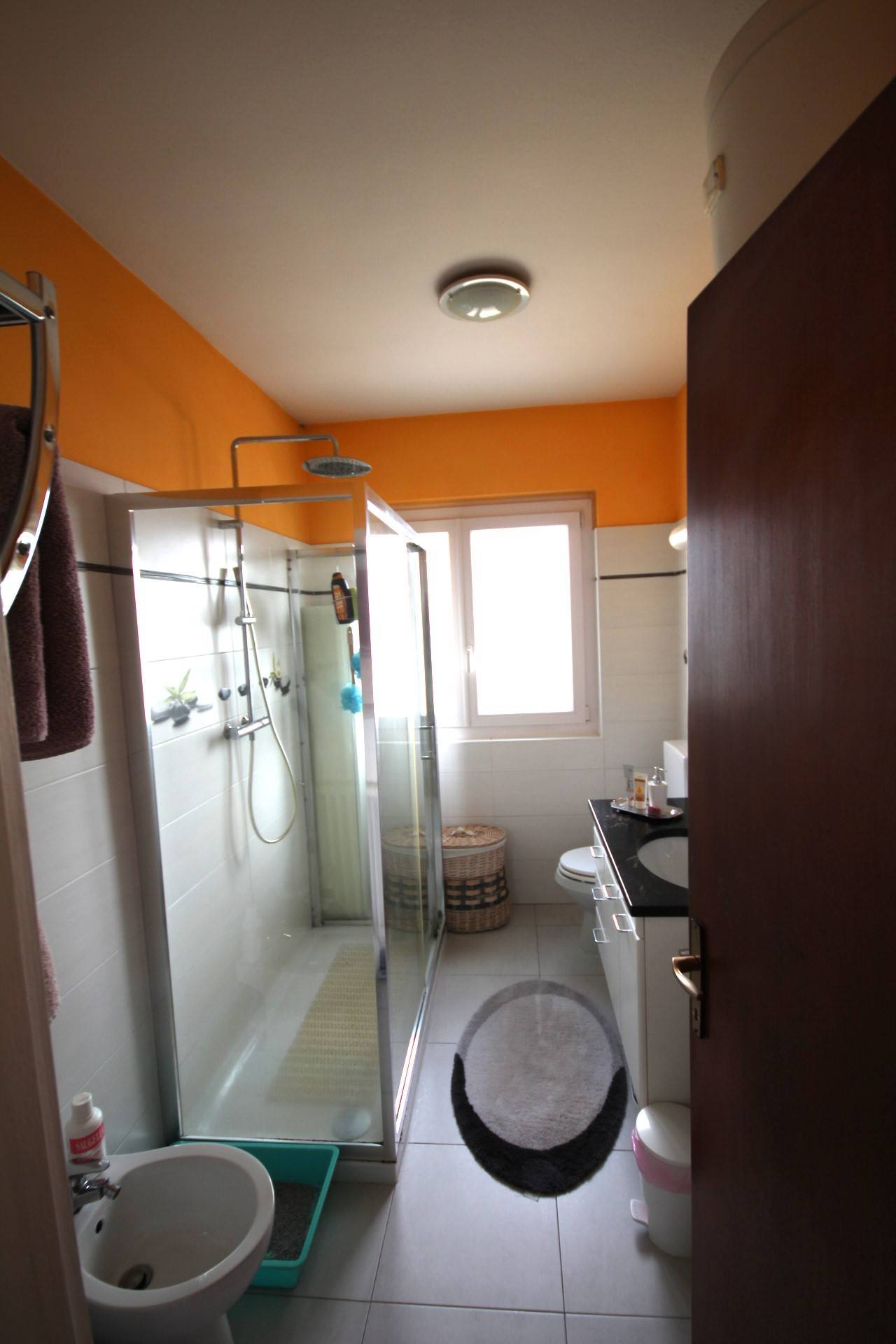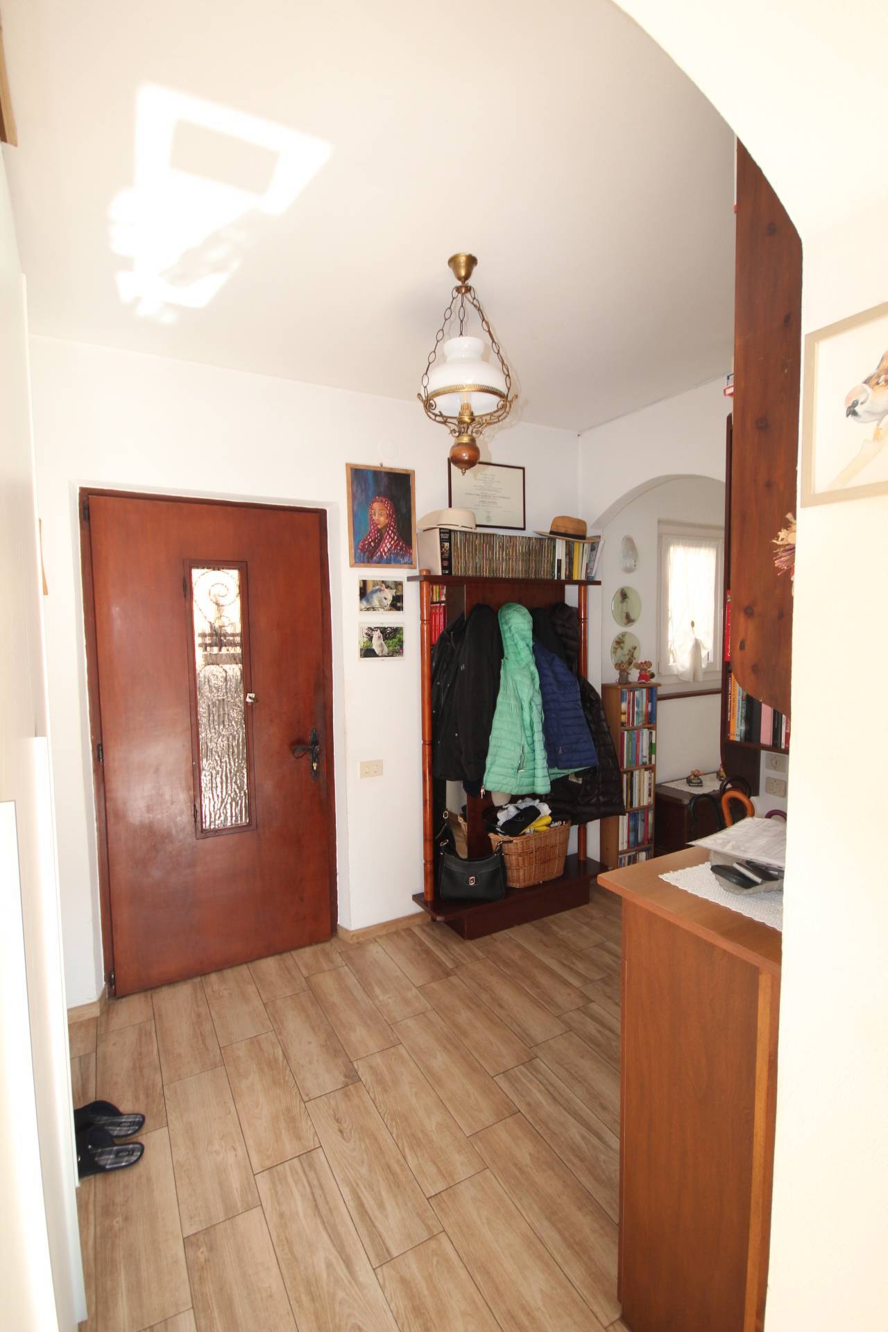 Al piano superiore, si trova lappartamento di circa 100 mq., ben ristrutturato, che dispone di ingresso, soggiorno con sala da pranzo, cucina, due camere da letto, entrambe con balcone, e bagno con ampia doccia.