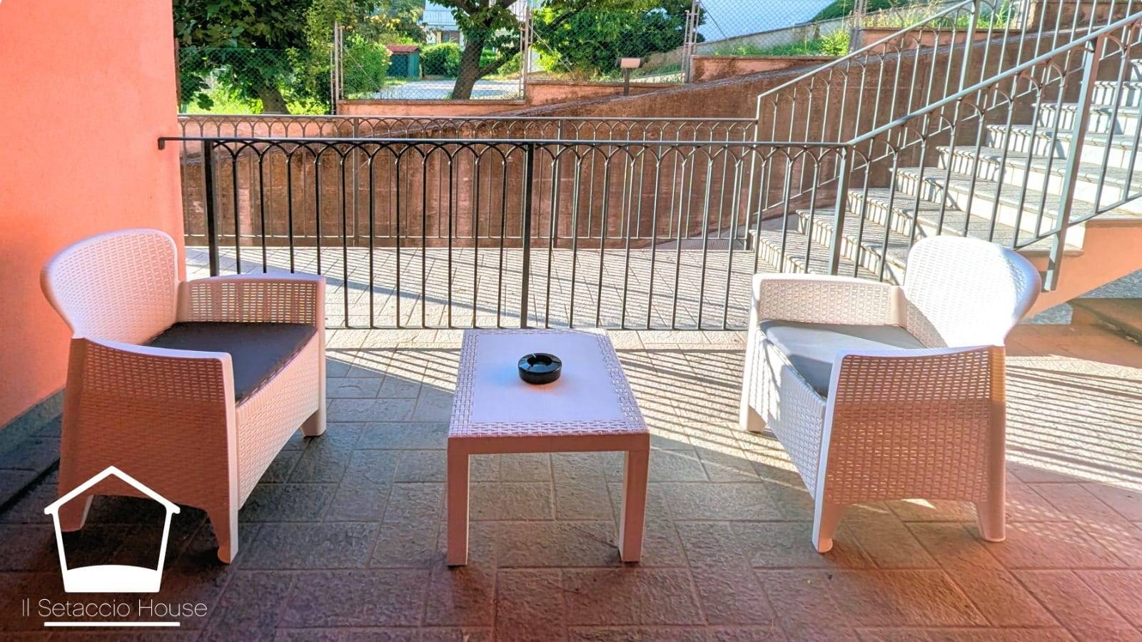 L'ingresso principale si apre su un ampio e luminoso soggiorno, dotato di una grande finestra che regala una piacevole vista sul giardino circostante.
