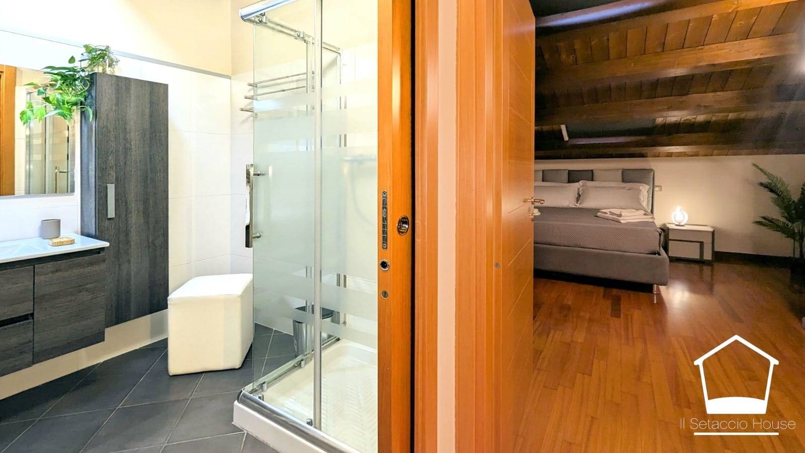 Una scala interna conduce al piano superiore, dove si trovano altre due camere da letto di cui una con balcone privato, e un secondo bagno.