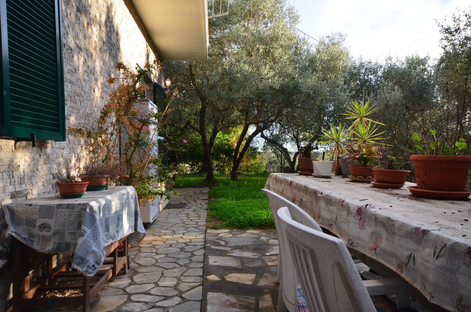 Ampio il giardino sui quattro lati, in parte terrazzato e in parte piantumato ad ulivi.