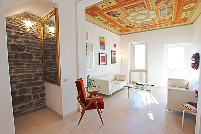 L'immobile stato completamente ristrutturato nel 1988 e si trova in perfette condizioni d'uso, rinnovato in chiave contemporanea con progetto d'arredo di designer di fama ed ancora assolutamente attuale e fresco sia a livello estetico che funzionale, dotato di riscaldamento autonomo a radiatori, pavimentazioni in parquet e moderno marmo travertino chiaro che dona grande luminosit e modernit agli ambienti, elementi originali dell'epoca come soffitti affrescati restaurati, camini e travi in legno a vista in un connubio di design contemporaneo.