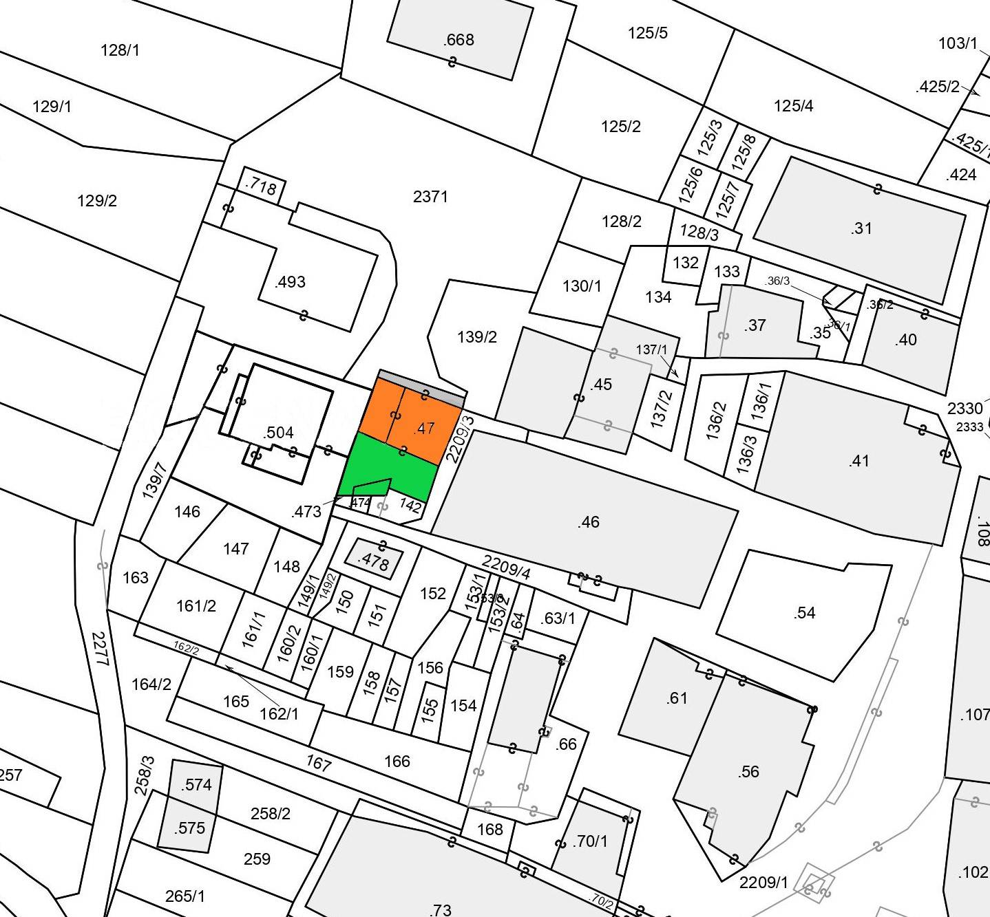 Attualmente composta da due "subalterni catastali", costituite da stalle e fienili, l'edificio catalogato nel Piano insediamenti storici del PRG come unit edilizia 33. La scheda dell'immobile prevede il cambio di destinazione d'uso in residenziale nella categoria di intervento - Risanamento, con la possibilit di nuove aperture finestrate sui prospetti nord/est e sud/ovest.