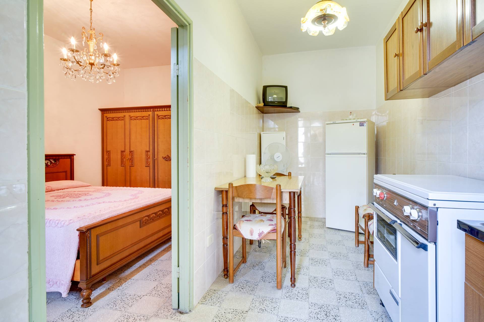 L'immobile del piano terra, composto da cucina abitabile, camera matrimoniale ed un bagno con accesso dal cortile, si presenta in uno stato di manutenzione abitabile, dotato di infissi in legno ma non dotato di impianto di riscaldamento.