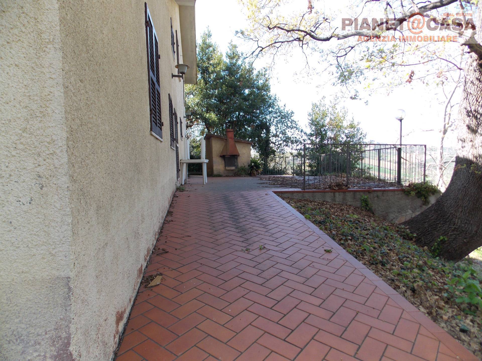 L' immobile si sviluppa su due livelli fuori terra : - Piano Terra composto da ingresso su ampio Soggiorno con camino, Corridoio, Cucina abitabile con altro camino, Cantina/Fondaco, Ripostiglio, una Camera ed un antibagno e Bagno, oltre a Lastrico esterno panoramico che affaccia sulla Corte/Giardino e su un Terreno Agricolo privato di circa 7.000 mq. con uliveto e quercia secolare.