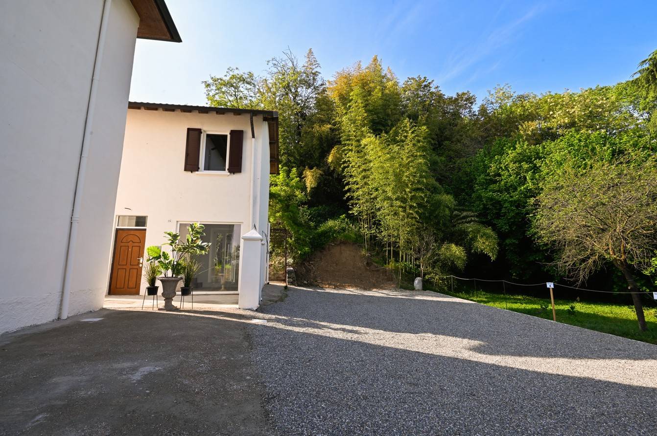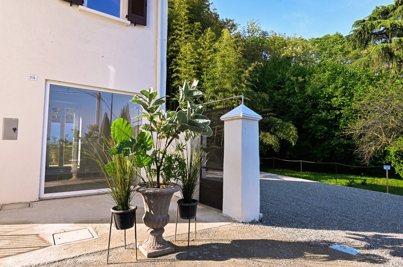 Sul retro della casa si sviluppa un elegante portico di 30 mq, perfetto come estensione della zona giorno e trasformabile in serra bioclimatica.